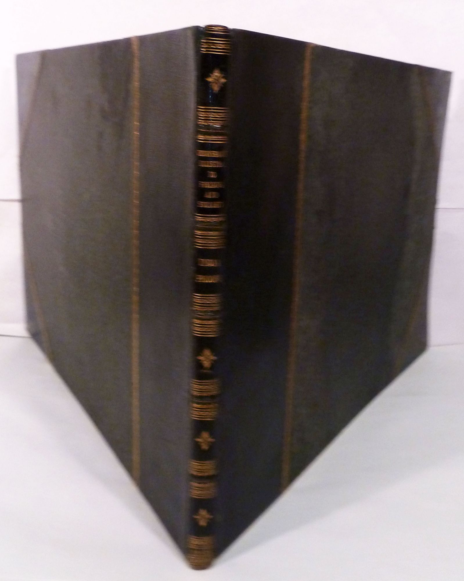 London: Cochrane and Pickersgill, James Cochrane, 1832. Hardcover. Three quarter green morocco and marbled boards, rebacked with spine laid-down. Aeg. Very good. Oblong 4to, 29.5 x 43 cm. No title page, spine reads "Cruikshank's Illustrations to Fielding and Smollett." Adopted from "Roscoe's Novelist's Library." COHN 702-707. There are 37 India proof portraits mounted on 19 leaves each with descriptive text. Smollett titles include, Humphrey Clinker (four etchings), Roderick Random (five etchings) and Peregrine Pickle (eight etchings). Fielding titles are Tom Jones, (eight etchings) The Adventures of Joseph Andrews (four etchings) and The History of Amelia (eight etchings). The images measure 17 x 11 cm. There are also two engraved portraits of the authors -- Fielding and Smollett. Images are bright and clean. Raised bands, spine gilt decorated in six compartments, rubbing to corners, light front cover stain.