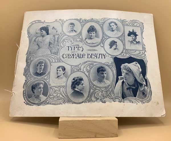Denver: Carson, Hurst & Harper, 1892. Original View Book. Paperback. Good +. Oblong quarto [25 cm x 32.5 cm] Illustrated wraps with a string tie binding. The wraps are subtly soiled and a bit creased. The edges of the wraps are chipped, with occasional small losses. There is a 3" thin, jagged tear at the foot of the spine along the fold and the surrounding are of the rear wrap. The pages have faint handling marks here and there, and sporadic shallow closed tears and chips in the margins. A booklet published by the Denver printing establishment, Carson, Hurst & Harper. Includes photographic reproductions of views of Manitou and Pike's Peak Railway, Manitou Springs, Balanced Rock, Mount of the Holy Cross, Green Lake, and more.