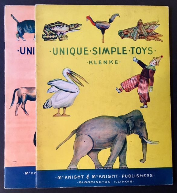 Bloomington, Illinois: McKnight & McKnight, 1936. Original wraps. Very Good +. Charming vintage toy catalogues from McKnight & McKnight of Bloomington, Illinois, issued in 1935 and 1936 respectively. Both volumes solid and VG+ in their wonderful pictorial wrappers, with very light, forgivable soiling at the panels. Tall quartos, internally immaculate, with no writing or markings of any kind.