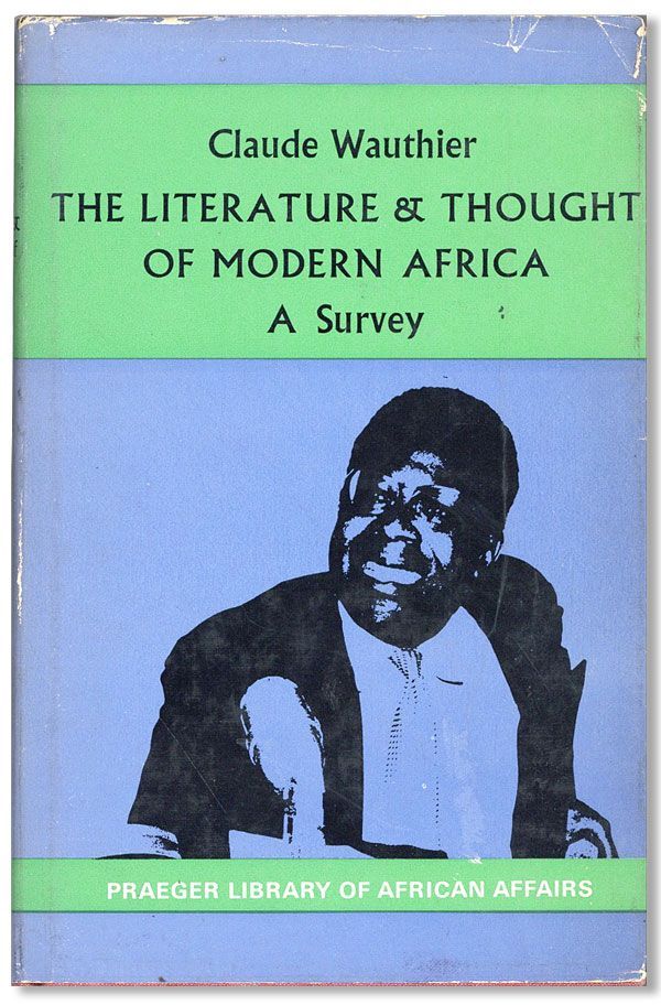 New York: Frederick A. Praeger, [1967]. First American Edition. First Printing. Octavo (22cm.); original cloth in blue and green photo-illustrated dust jacket; 323pp. A few short closed tears with subsequent creasing to top edge of upper jacket panel, spine a bit faded, else Near Very Good and sound. Translation of the revised French edition. Survey of French and English-language political African literature. Praeger Library of African Affairs.