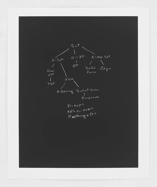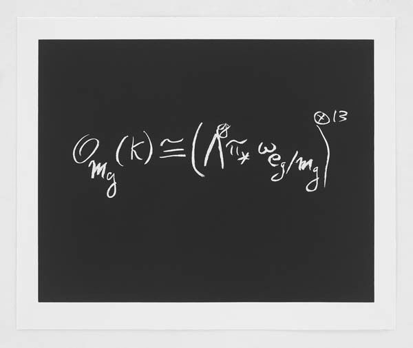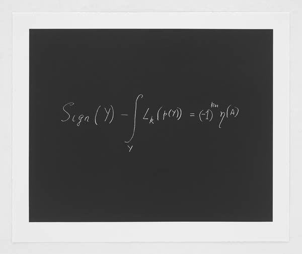 In 2012, Parasol commissioned ten mathematicians, physicists, and computer scientists, including two Nobel Laureates and five Fields Medalists, to create etchings of the mathematical expression most meaningful to them. These formulae were then printed by the fine-art print shop Harlan and Weaver as aquatints, evoking the look of equations quickly and elegantly sketched in white chalk on a blackboard. Accompanied by an expository essay of each and description card, signed by each.
