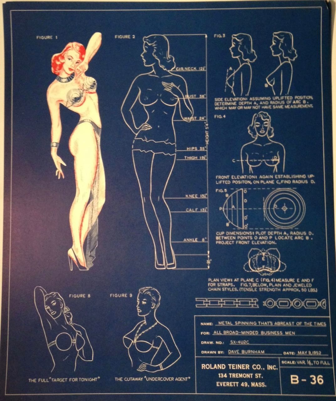 Everett, MA: Roland Teiner Co, 1952. Poster. Fine. Poster. Printed in the saturated blue of engineering blueprints, though on heavier stock. Their focus during WW2 had been largely military and, as the war ended, they were apparently brainstorming ideas about product areas... This was, very likely, an engineer's joke that was 'good enough' that the company printed them as a promotional/holiday gift. Bright and clean. Framed print. Art is 13.75x16.5". [Available framed].