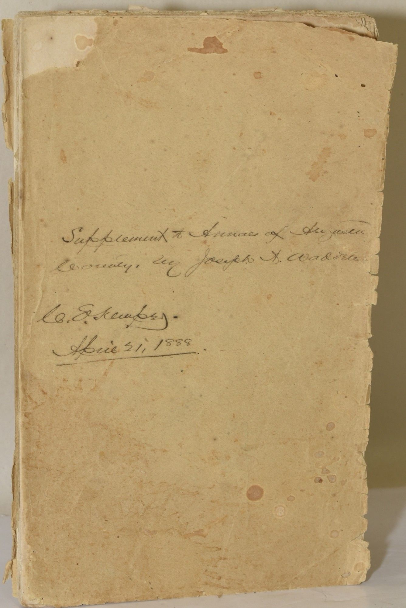 Richmond, VA: J. W. Randolph & English, 1888. First Edition. Soft Cover. Very Good binding. The first edition of the Supplement to Waddell's important Annals of Augusta County, issued the same year as the book. In the publisher's drab wrappers, on which the owner -- C. E. Kemper, who himself wrote some articles on Rockingham County history -- has written his name and the title, dated April 21, 1888. Comprising a Table of Contents, and pp. 381-492. Uncommon in this format. Very Good binding.