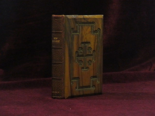 Oxford/London: Oxford University Press/Henry Froud. Hard Cover. Near Fine. 32mo. circa 1900. A near fine copy bound in leather spine and olive wood boards. Gilt lettering spine. All edges gilt. Owner inscription ffep. A beautifully bound little new testament. 464 pp.