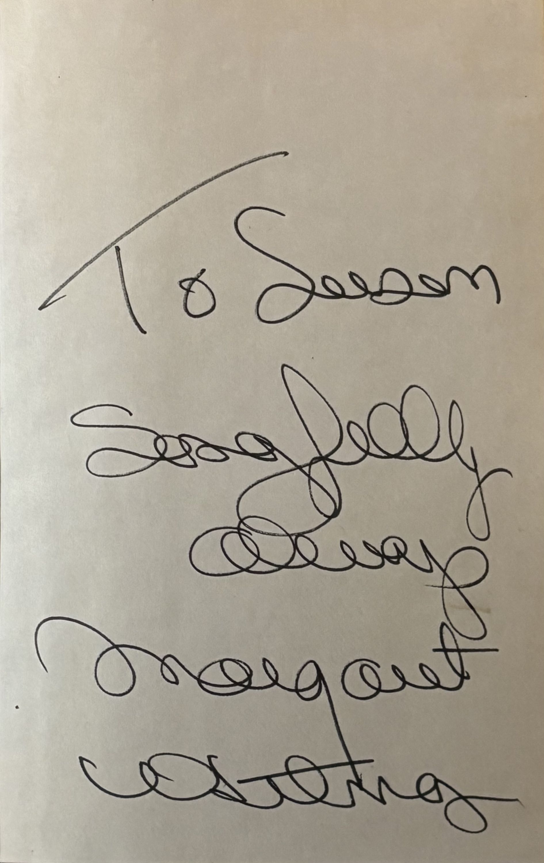 Presentation copy, signed in full in large handwriting on the endpaper "To Susan, songfully always Margaret Whiting"