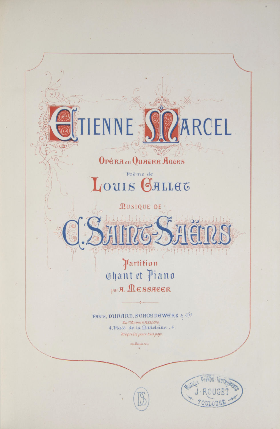 Etienne Marcel Opera in Quatre Actes Poëme de Louis Gallet ... Partition Chant et Piano par A. Messager. [Piano-vocal score]