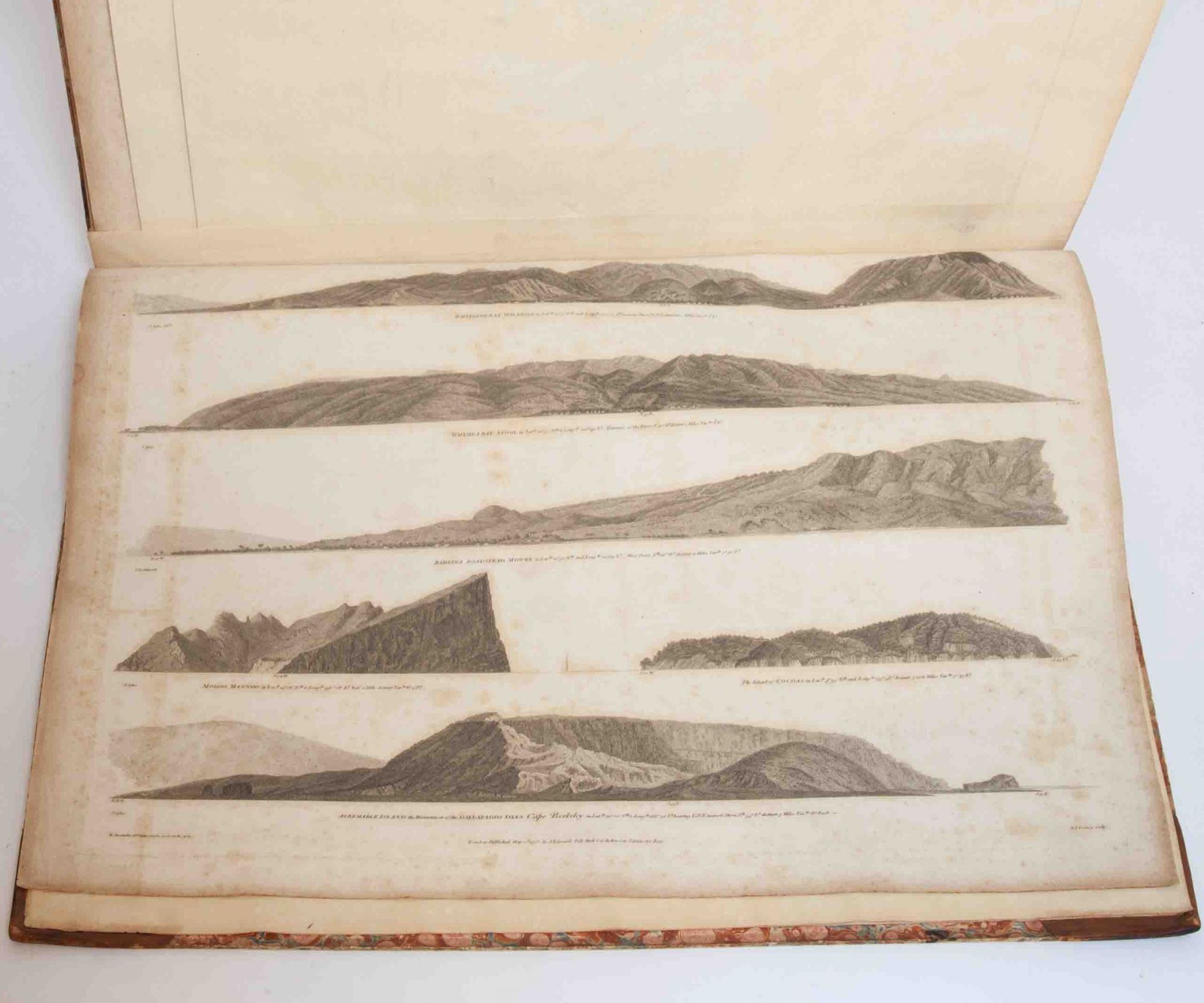 London: Printed for G.G. and J. Robinson, and J. Edwards, 1798. First edition. Three quarto volumes (11 3/4 x 9 3/8 inches; 299 x 239 mm) plus folio atlas volume (22 x 16 3/4 inches; 560 x 430 mm), collating: [8], xxix, [1, blank], [2, ads], [4, contents], [2, list of plates], 432; [10], 504; [10], 505, [3, errata] pp. Eighteen engraved plates, one of which is a map in the text. Ten folding maps and six plates of profiles in the atlas volume. Complete with half-titles and errata.