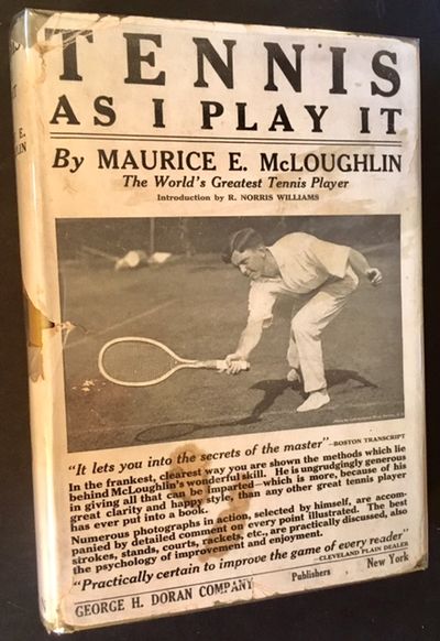 New York: George H. Doran Company, 1915. Cloth. Very Good +/Very Good -. A solid copy of the 1915 1st edition, IN THE VERY UNCOMMON PICTORIAL DUSTJACKET. Ghostwritten, by all accounts, by a young Sinclair Lewis, who 15 years later would become the first American writer to win the Nobel Prize in literature. Tight and VG+, with no writing or markings of any kind (foxing, etc.) to speak of. And in a bright, VG- (and yet still very presentable) example of the fragile dustjacket. The jacket shows a degree of chipping along the panel edges (resulting in just a touch of loss to the title at the spine crown and the publisher's address at the foot of the rear panel), a 3" chip in the center of the spine (roughly the size of a quarter and then running down a bit), inconspicuous staining and tape re-inforcing to the inside of the dustjacket and, finally, light staining --and a bit of creasing-- to the front panel. Thick octavo, illustrated with 72 crisp black-and-white photos, Introduction/Preface by R. Norris Williams, 2nd (the 1914 National Champion of the United States). Maurice McLoughlin (1890-1957) not only won the US Championships in 1912 and 1913 and earned the world #1 ranking in 1914, he was also the first men's player from the Western United States (Nevada) to become US Champion and the first US finalist at Wimbledon (where he lost to Anthony Wilding in 1913).