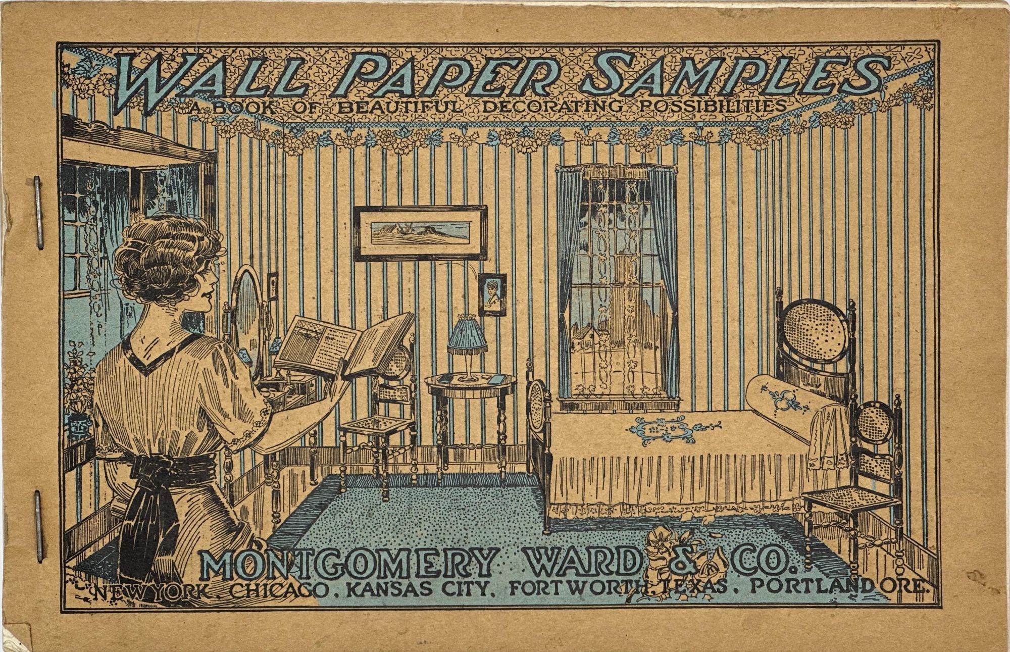 New York. Chicago. Kansas City. Fort Worth, Texas. Portland, Ore: Montgomery Ward & Co, 1910. Brown illustrated wrappers printed in blue and black ink. 15 x 22 cm. (140)pp. All colored wallpaper samples. Very good. OCLC: PAT, TXJ.