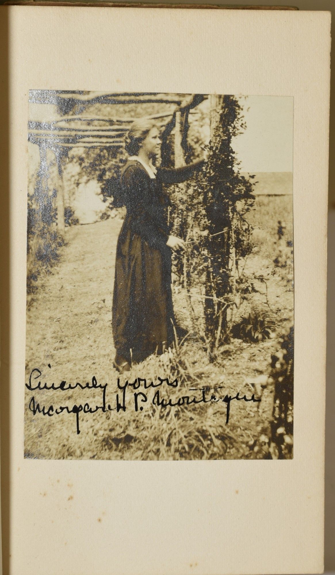 Garden City, New York: Doubleday, Page and Company, 1920. First Edition. Hard Cover. Very Good binding/Fair dust jacket. Inscribed by Virginia author Edna Turpin to Mr. and Mrs. James Southall Wilson (he being the revered Professor of English at the University of Virginia, as well as Founder of the Virginia Quarterly Review) and dated Christmas 1920. There is an additional card from Edna Turpin laid in: "I hope you will enjoy this little book the more because it has a picture of Margaret Montague which I took at her home last spring to which she has added her autograph". Pasted in is the signed photograph. As well there is laid in a card from James Southall Wilson to his daughter giving her the book. A very good copy in a dustjacket which separated at the spine fold; there is some loss to the spine. Some old tape residue to the pastedown. The dustjacket has not been price-clipped and is now protected with a new mylar cover. Very Good binding / Fair dust jacket.