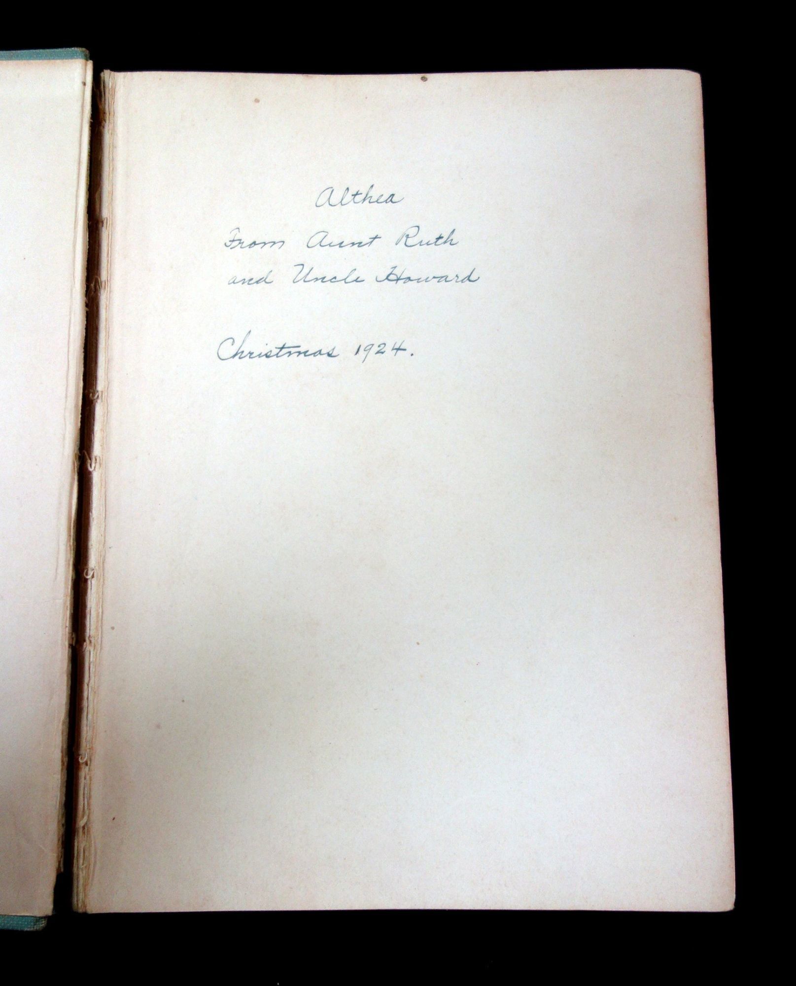 Measures 8" x 6" Covers have minor edge wear. Binding is loose. Previous owner inscription on front free endpaper. Minor toning due to age.