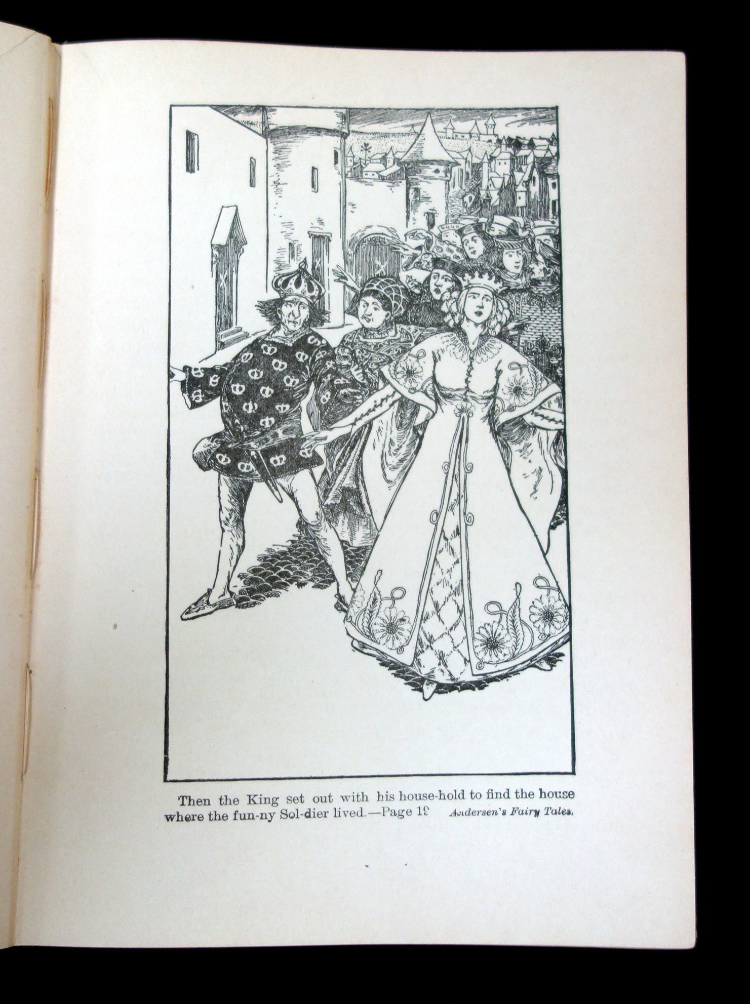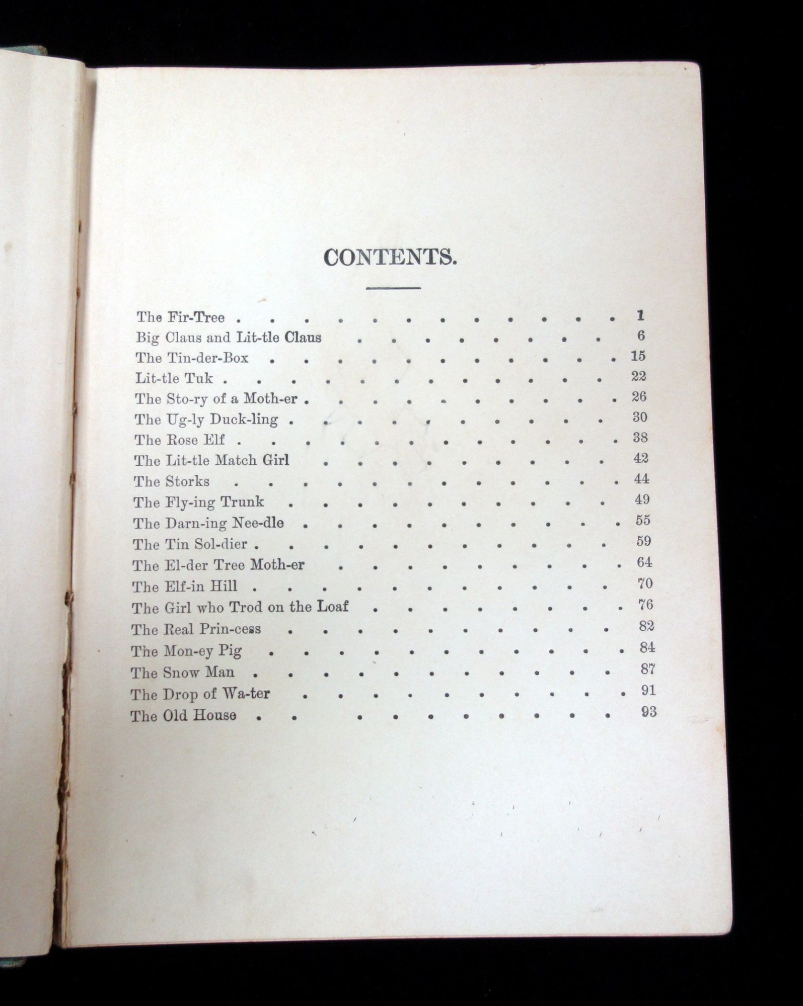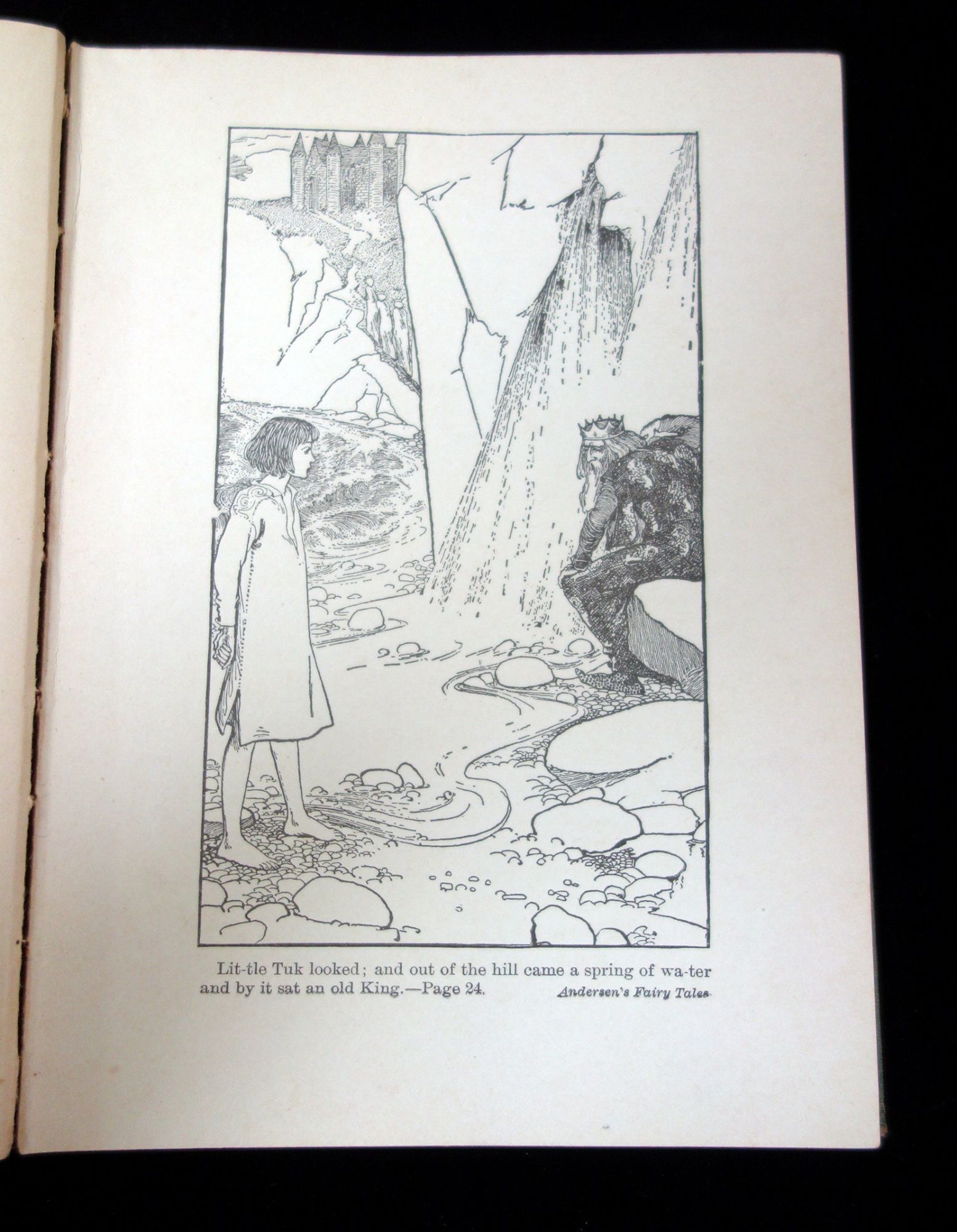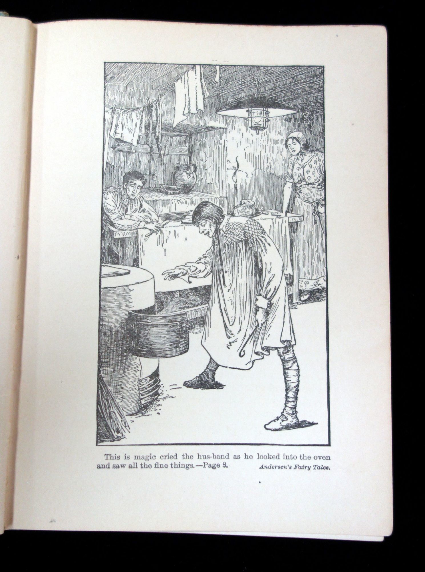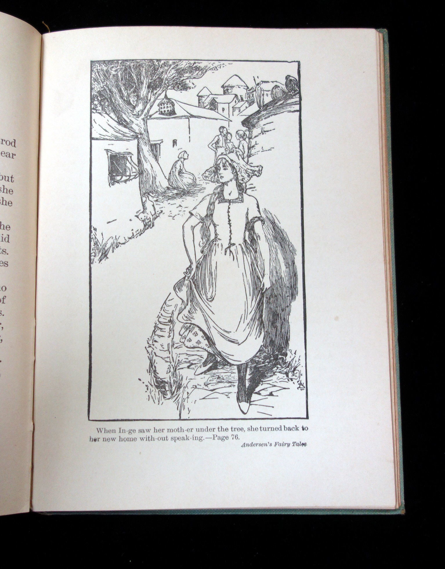 New York: A L Burt Company, 1900. 97 pp. green cloth covers with a stamped illustration of man and cat standing in front of door. A retelling of some of Hans Christian Andersen classic fairy tales, such as 'The Fir-Tree' and 'The Little Match Girl'. Illustrated with numerous black and white as well as color plates.