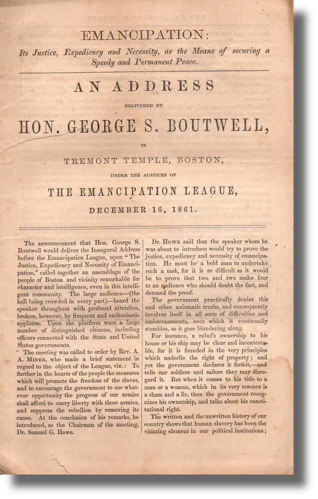 An Address Delivered by Hon. George S. Boutwell, in Tremont Temple, Boston, Under the Auspices of the Emancipation League, December 16, 1861