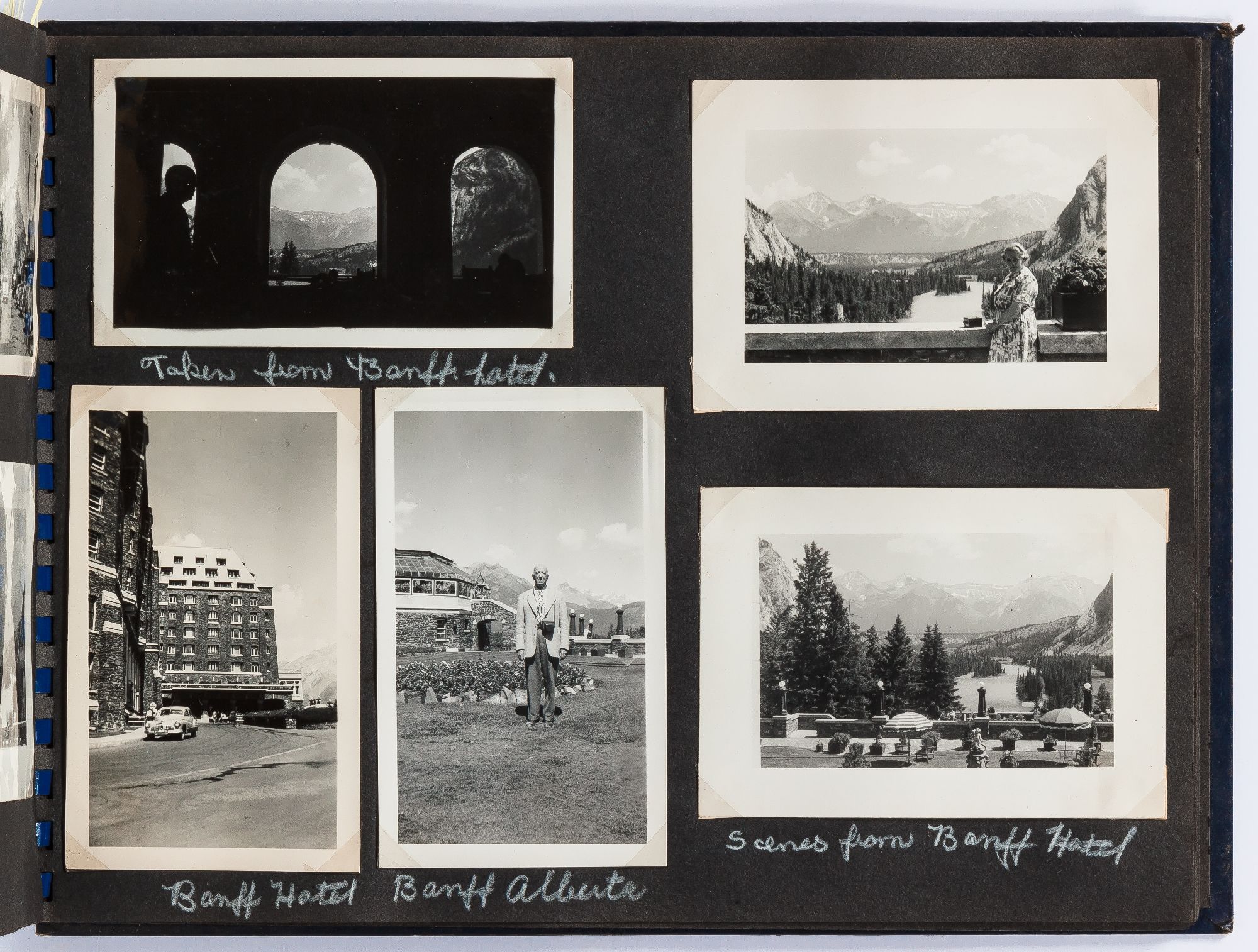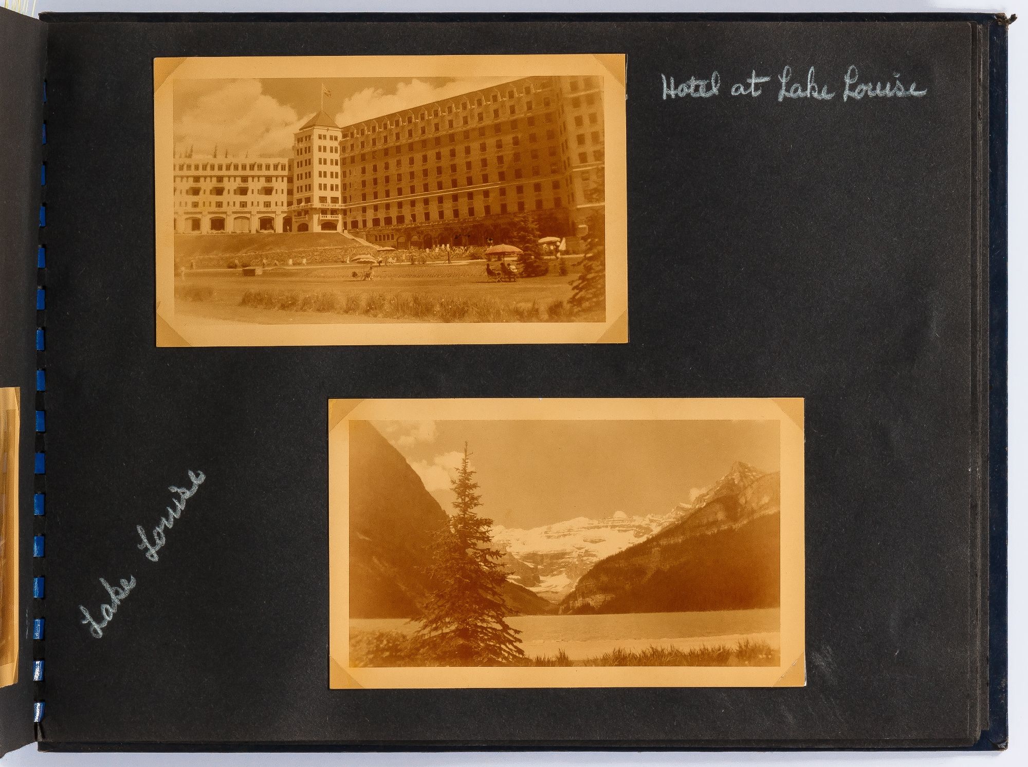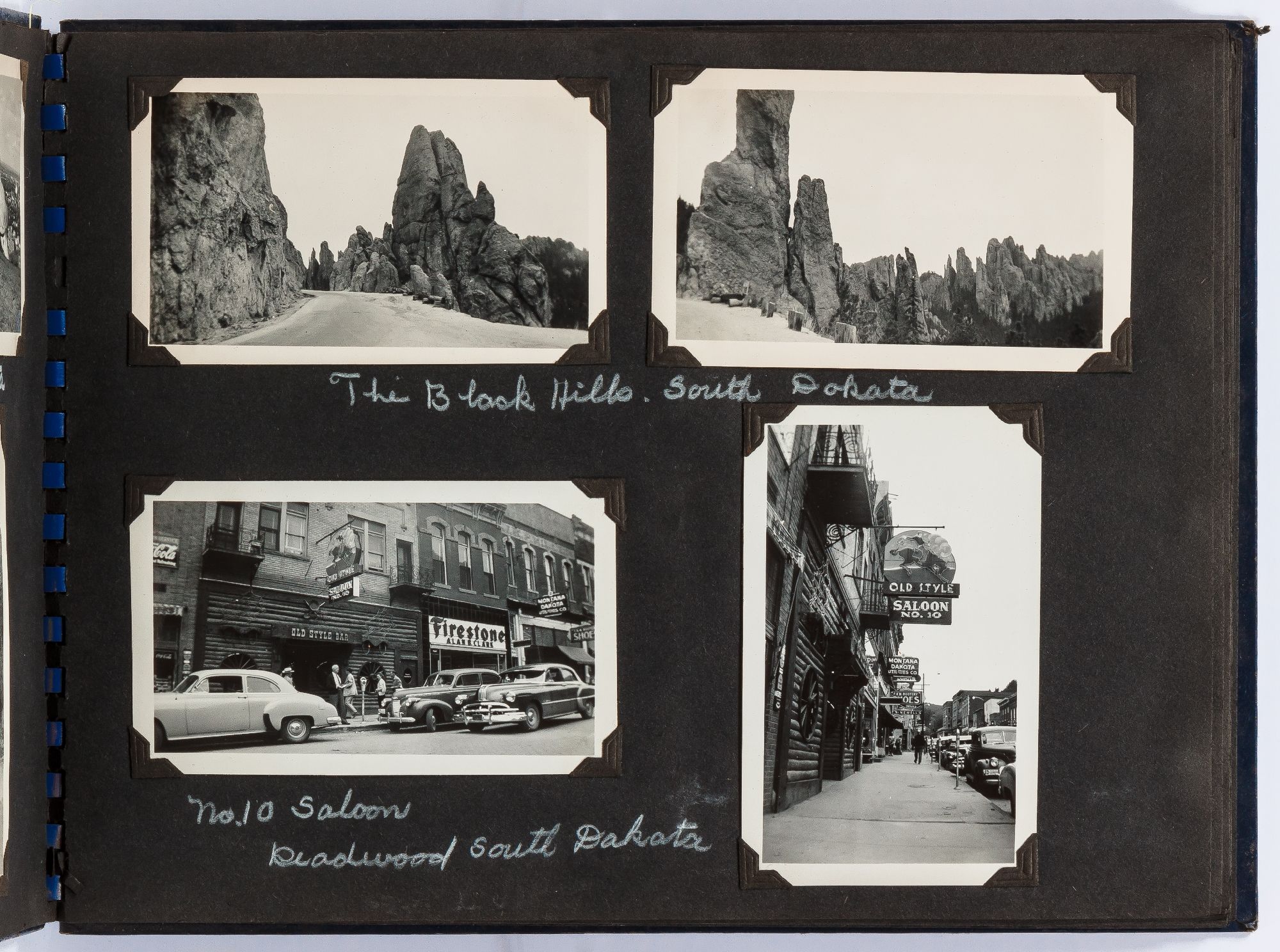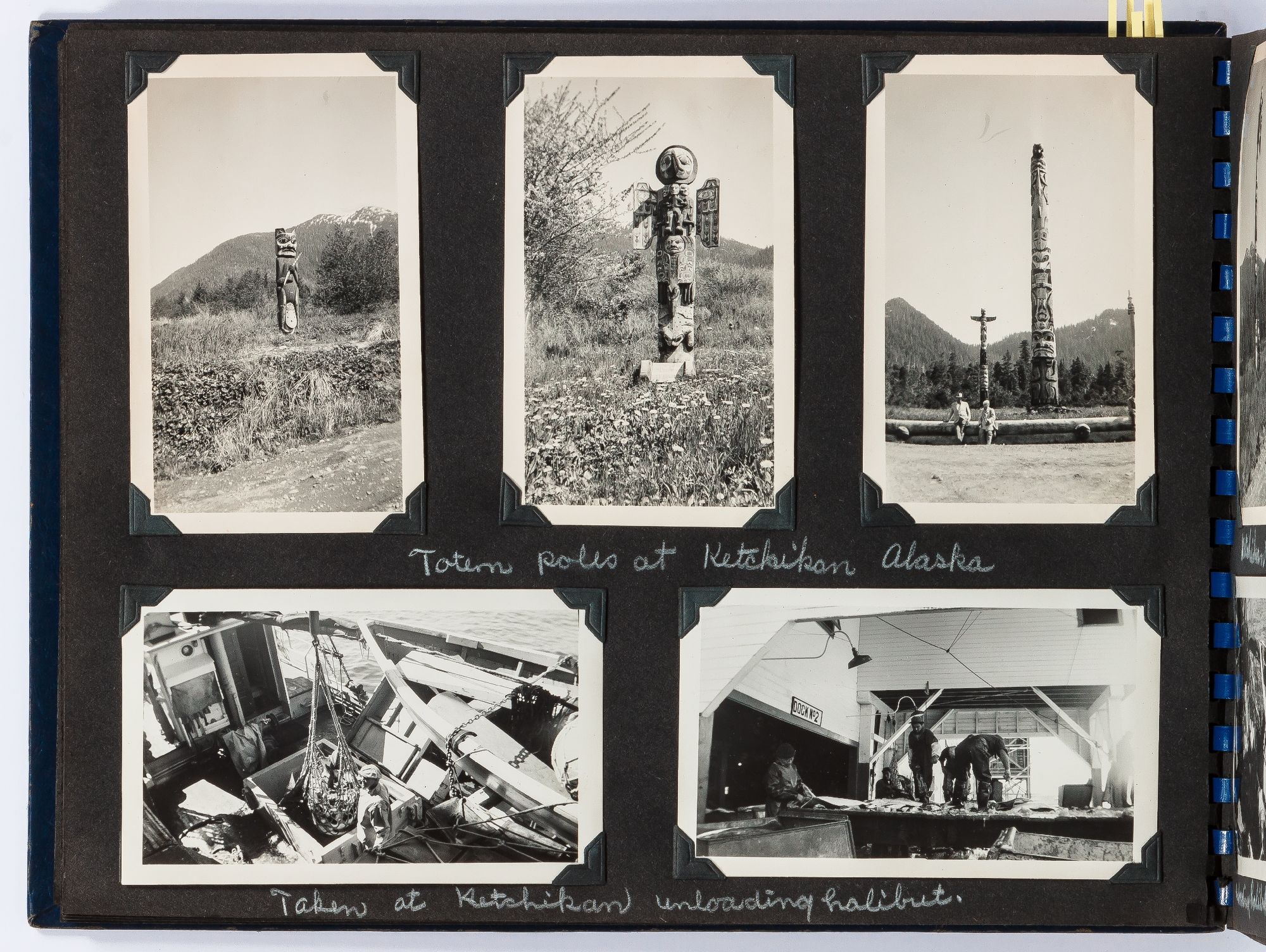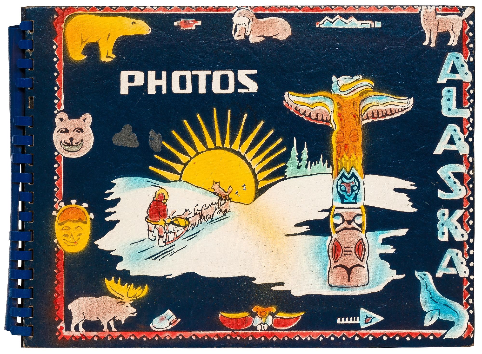 Alaska, Montana, South Dakota, Canada, 1950. Hardcover. Near Fine. Oblong quarto measuring 12" x 9". Spiral bound blue leather with decorative images of Alaska on the front board. Contains 109 sepia-toned or black and white gelatin silver photographs measuring between 3" x 4.5" and 3.5" x 6" with captions. Near fine album with some rubbing with near fine photographs.