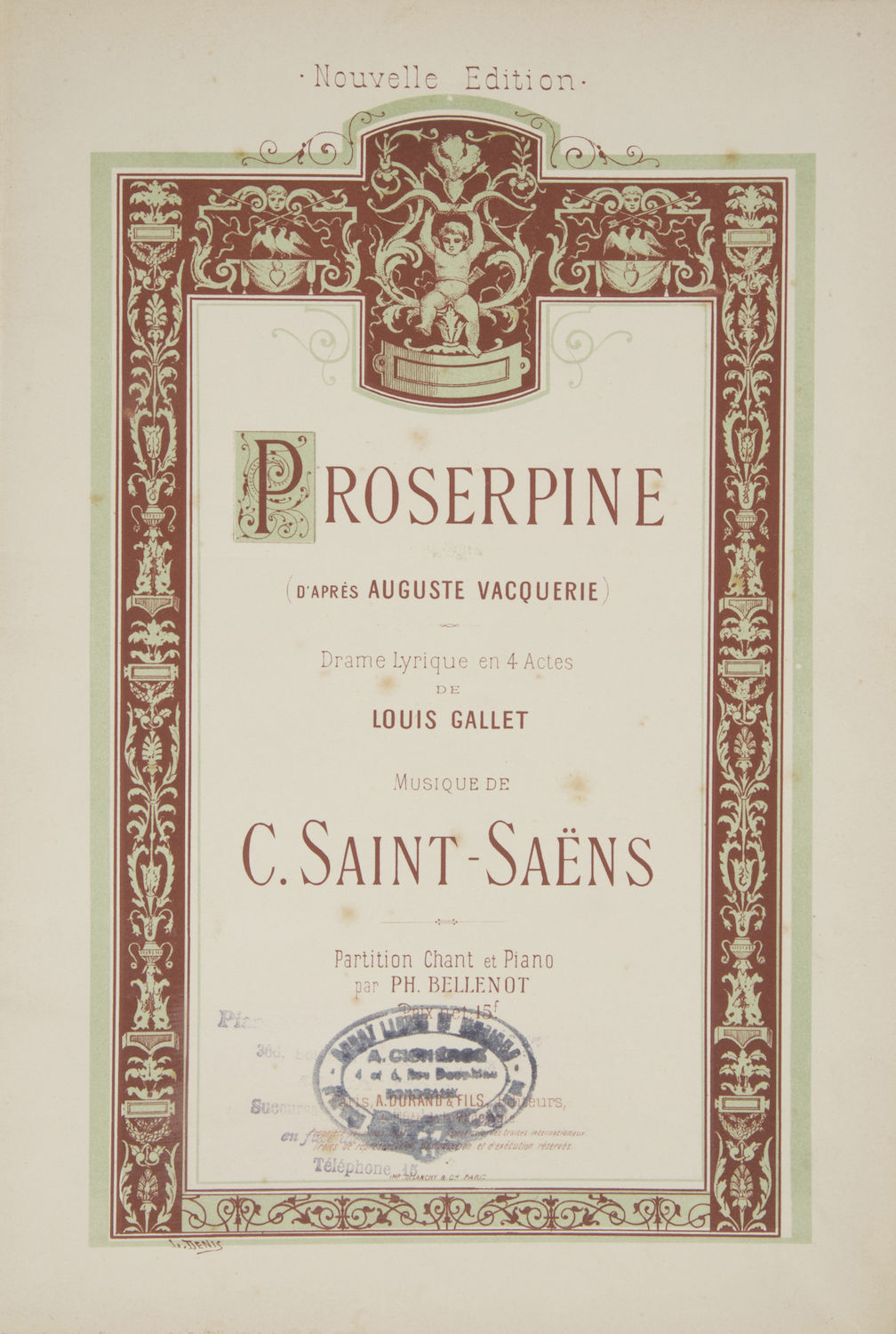 Proserpine (d'après Auguste Vacquerie) Drame Lyrique en 4 Actes de Louis Gallet ... Partition Chant et Piano par Ph. Bellenot Prix net: 15f ... Nouvelle Edition. [Piano-vocal score]