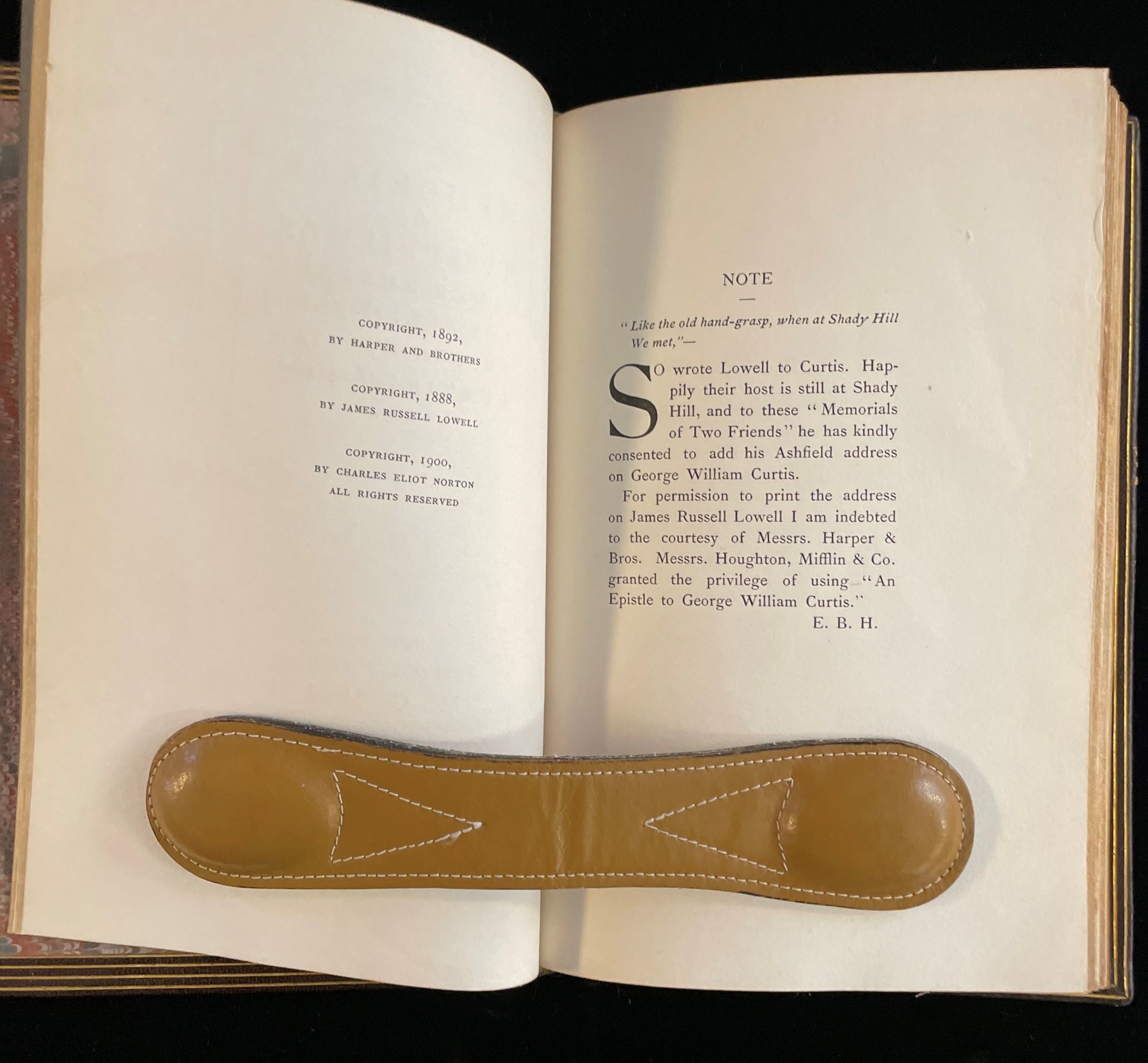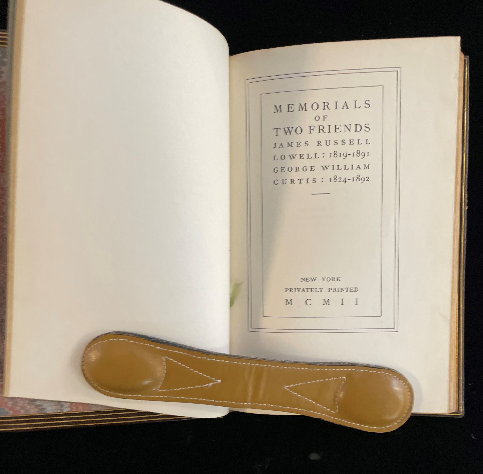 MEMORIALS OF TWO FRIENDS - JAMES RUSSELL LOWELL 1819 - 1921 GEORGE WILLIAM CURTIS 1824 - 1892