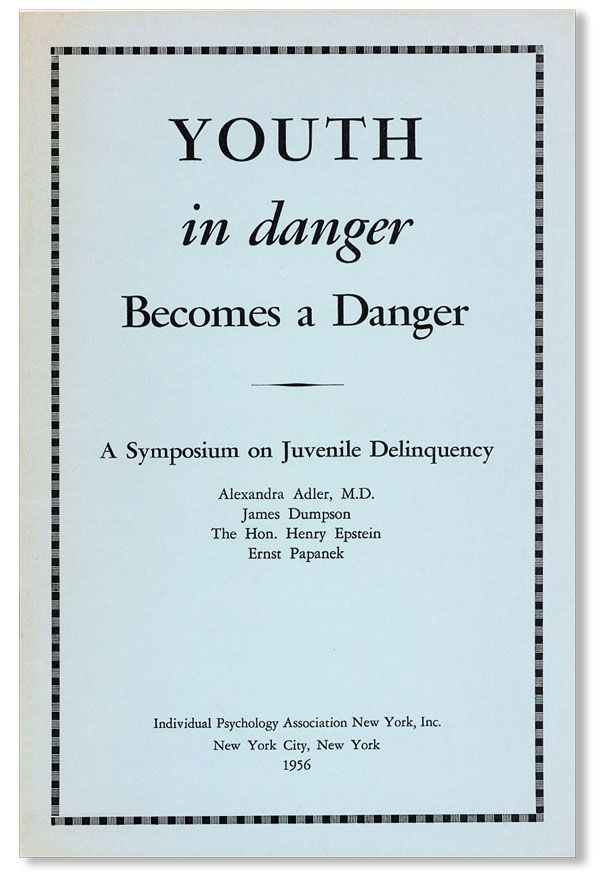 Youth in Danger Becomes a Danger. Fourth Annual Conference, American Society of Adlerian Psychology, May 14th, 1955 [Cover subtitle: A Symposium on Juvenile Delinquency]