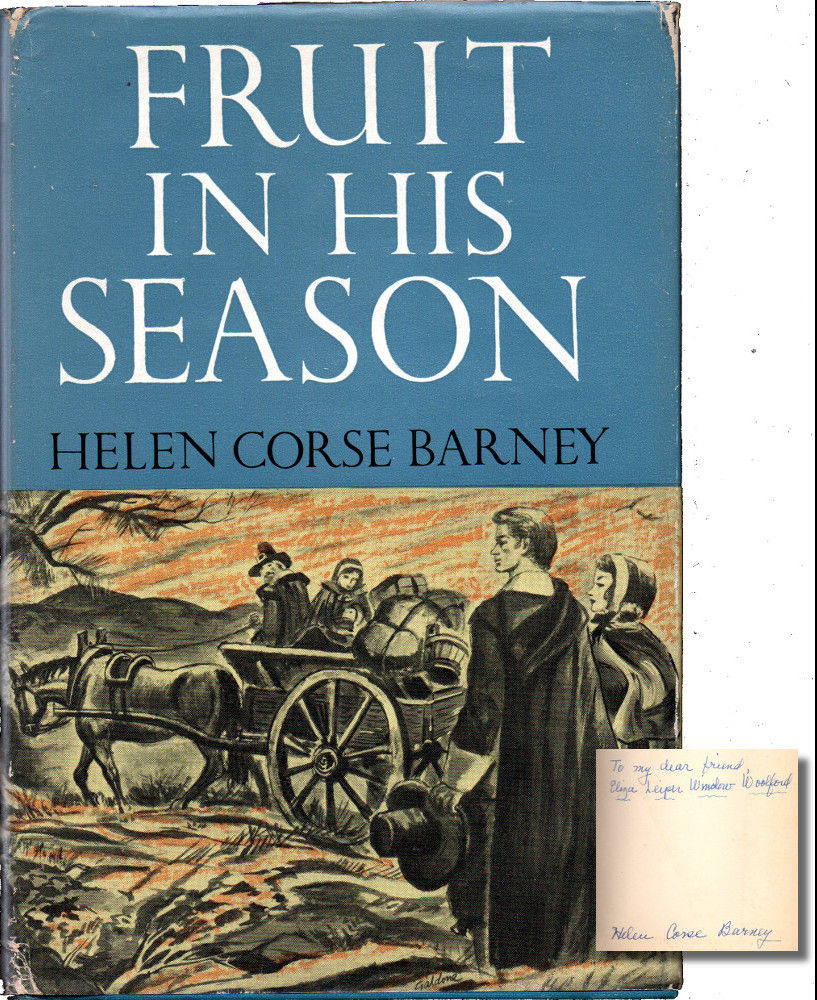 NY: Crown Publishers, 1951. Hardcover. Very good. Hardcover. First Edition. Very good hardback in a lightly rubbed jacket that has some minor loss at the extremities and sunning to the spine. Inscribed and signed by Barney on the front free endpaper. Novel about Quakers leaving Virginia to settle in Ohio.