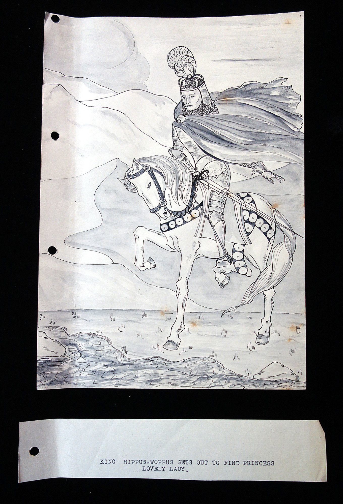 London, 1960. Includes two stories titled The Story of King Hippus-Woppus & Queen Lovely Lady and The Strange Adventures in the Forest, of Little Diamond-Eyes. The first is 44pp long. The characters include King Hippus-Woppus, Lovely Lady, Kim Dymo (Lovely Lady's Father the King), Katta-Wann-Shee (sorcerer), Princess Dream-of-Delight, Araminta (the Cat) and Mr. Whiskers, Prince Braveheart, Princess Happy-All-the-Day, King Kee-Hiley, Queen Lotus Blossom, Prince Ti-Yemminnots, Chinnamooni (sorcerer), Robert the Raven, Prince Kiska and the Great Scientist. A charming yet simple story even with the long cast of characters.