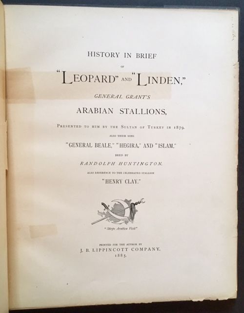 History in Brief of "Leopard" and "Linden", General Grant's Arabian Stallions, Presented to Him by the Sultan of Turkey in 1879. Also Their Sons "General Beale", "Hegira" and "Islam", Bred by Randolph Huntington. Also Reference to the Celebrated Stallion "Henry Clay