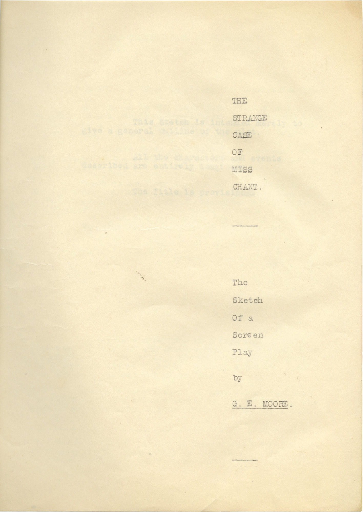 The Strange Case of Miss Chant (Original treatment script for an unproduced film)