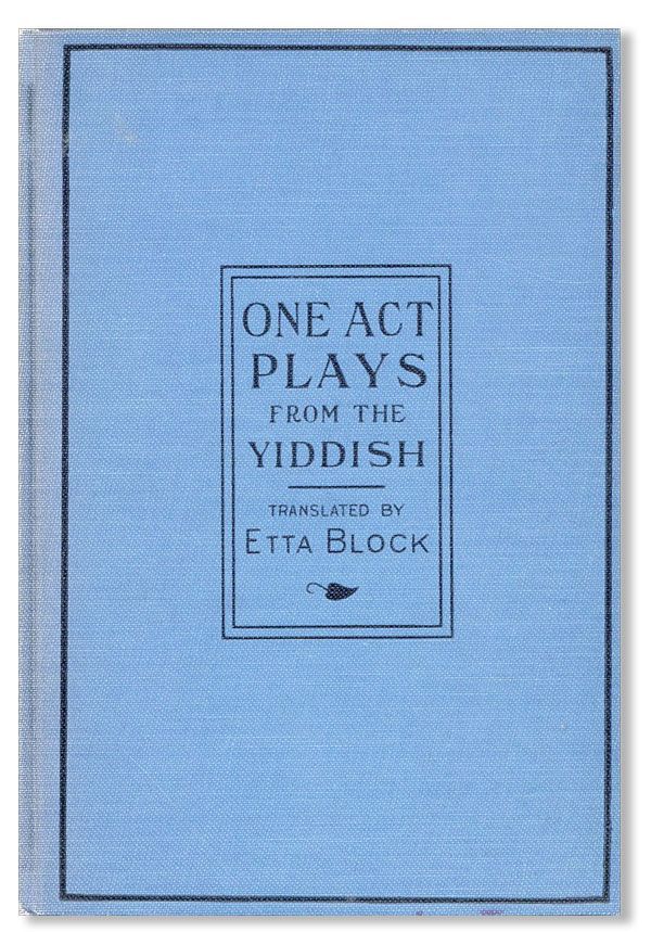 Cincinnati: Stewart Kidd Company Publishers, [1923]. First Edition. Octavo (19.5cm.); publisher's blue cloth lettered in black; [8],165pp. Spine a shade sunned else a Very Good to Near Fine copy. Presumably in a remainder binding with "Appleton" printed at spine foot. Includes three plays by the Artef playwright Peretz (spelled here "Perez") Hirshbein.