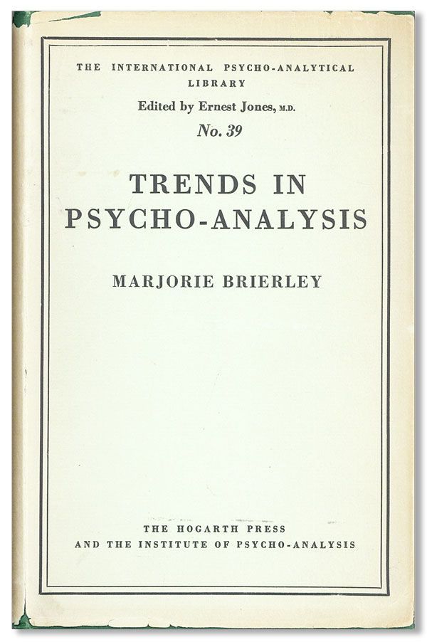 London: Hogarth Press Ltd, 1951. First Edition. Octavo (22.5cm.); publisher's cloth in pale green printed dust jacket; 319pp. Jacket extremities chipped with a few short closed tears and shallow losses at spine ends, some toning along edges, otherwise Fine in About Very Good jacket. International Psycho-Analytical Library no. 39.