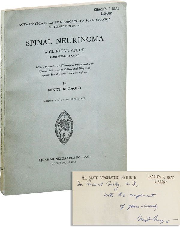 Spinal Neurinoma: A Clinical Study Comprising of 44 Cases. With a discussion of histological origin and with special reference to differential diagnosis against spinal glioma and meningioma [Inscribed & Signed to Percival Bailey]