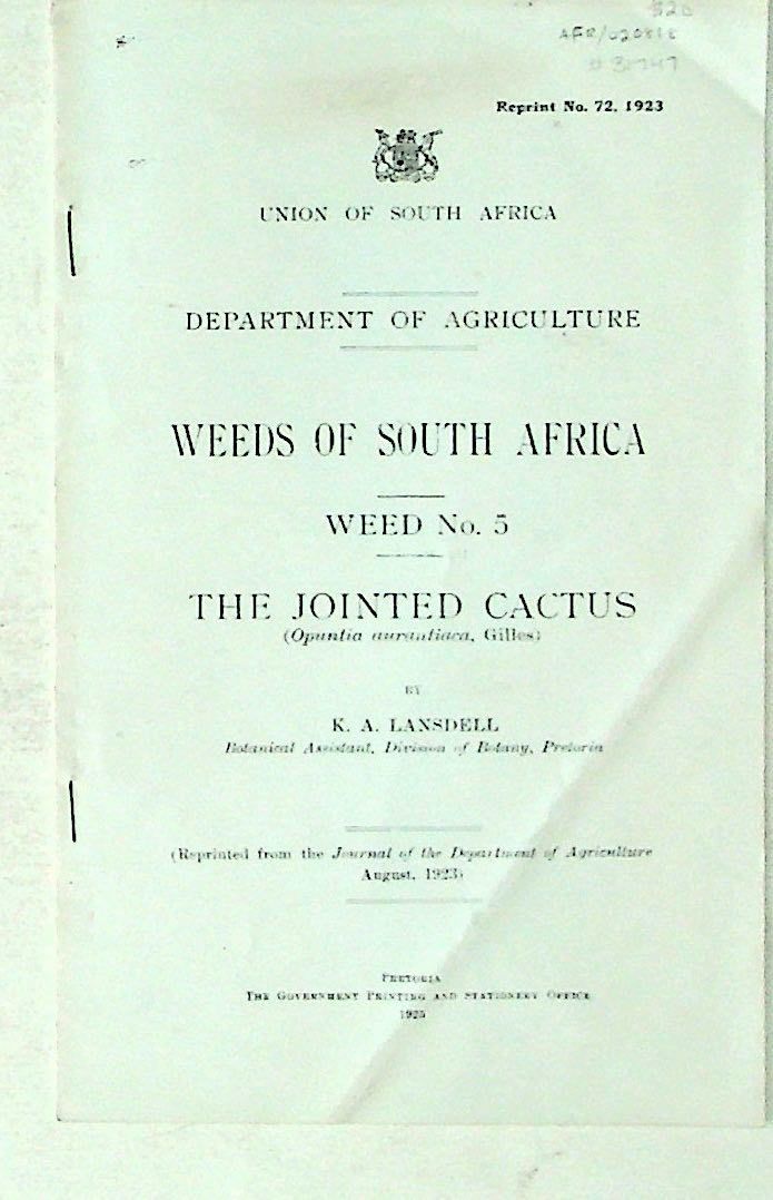 Weeds of South Africa. WEED No. 5. The Jointed Cactus