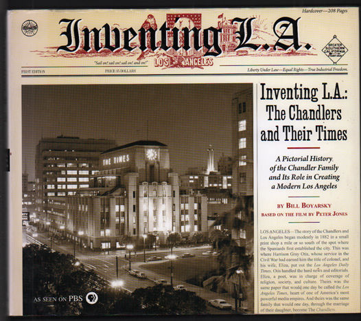 Santa Monica, CA: Angel City Press, 2009. First edition. Hardcover. Very good/very good. 208pp. Oblong quarto [25 cm x 29 cm] Black paper over boards. There is a gift inscription on the half title page, and the pages are sporadically yellowed. In a dust jacket, with creasing to the edges, mild rubbing to the surface, and areas of toning. May require extra postage due to weight. From the dust jacket- "According to the late David Halberstam, 'No single family has dominated any major region of the country as the Chandlers have dominated Southern California. They did not so much to foster the growth of Los Angeles as invent it.' Based on the PBS documentary of the same name. Inventing L.A. traces the history of the Chandler family, the incredible impact of their Los Angeles Times, and how they shaped the city that many say has reshaped the world.