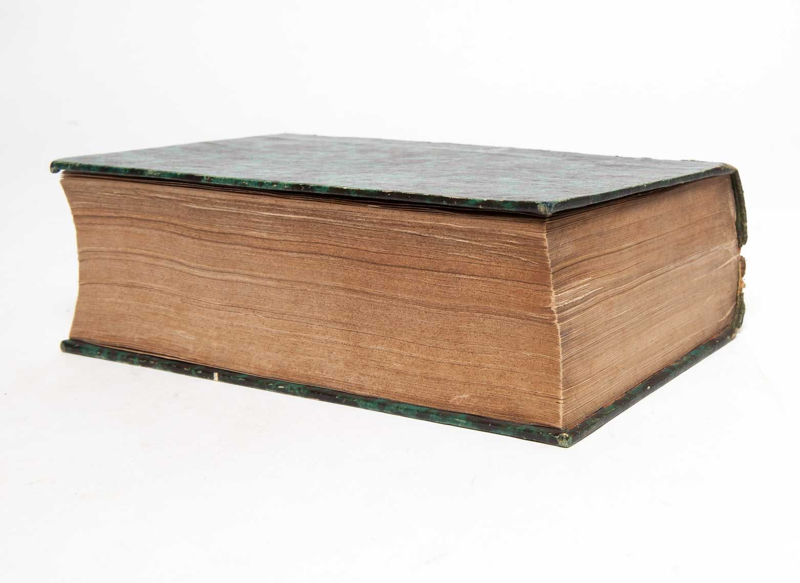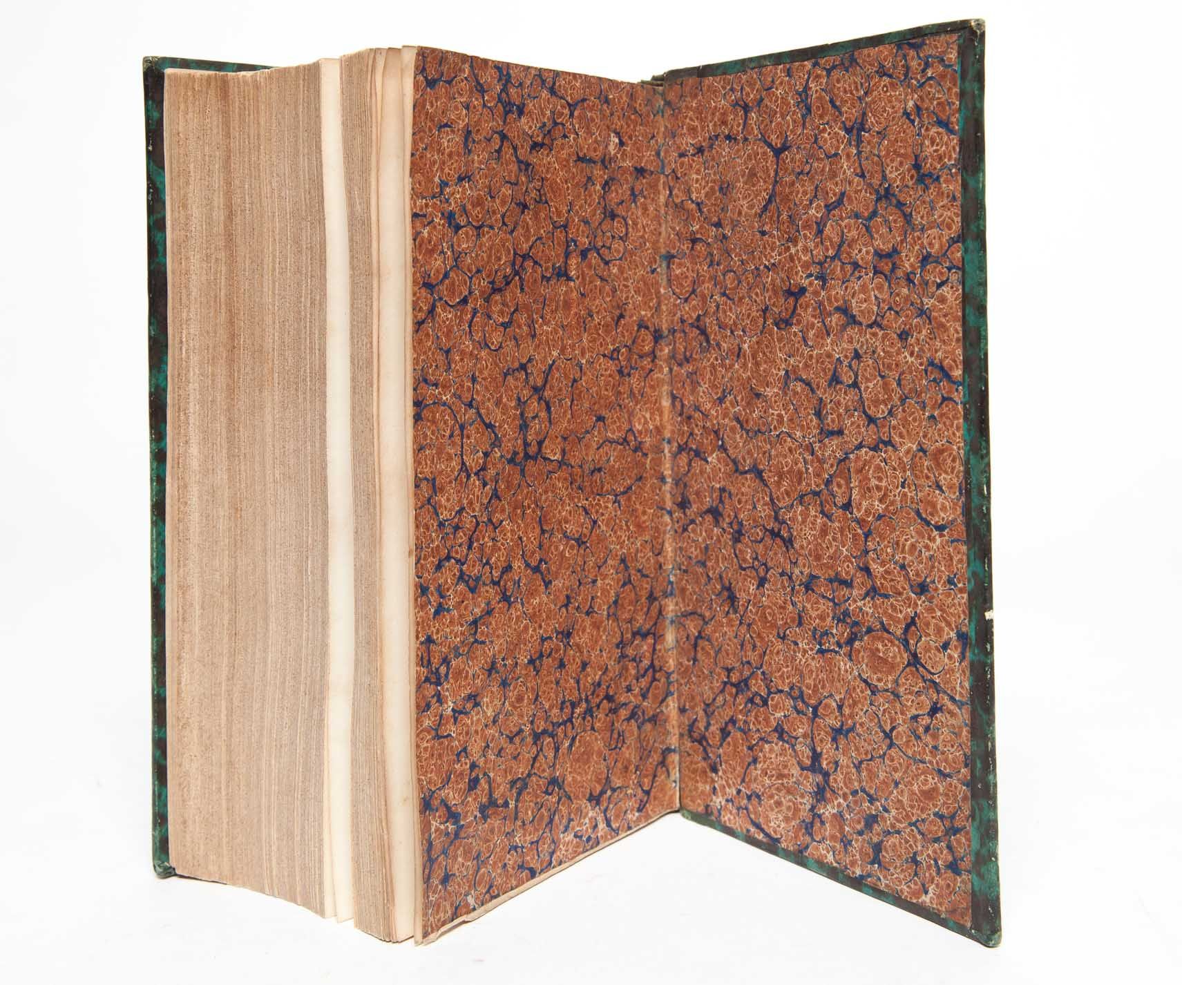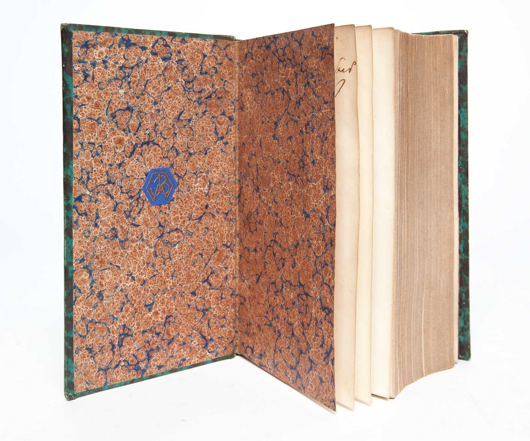 Paris: Pagnerre, 1850. Thirteenth Edition. Revised, corrected and augmented with a comparative examination of democracy in the United States and Switzerland, and an appendix. Text in French. Inscribed by the author: "à M. Courbis offert par l'auteur AT." Bound in a contemporary French binding of green quarter morocco over paper boards, marbled end-papers. Two volumes bound together in one, collating: viii, 512; viii, 476. Binding with slight chipping at the head of the spine, otherwise in excellent condition. Besides the present example, only one other inscribed copy of this 1850 revised edition can be found in the auction record, selling for 11,875 euro in 2013.