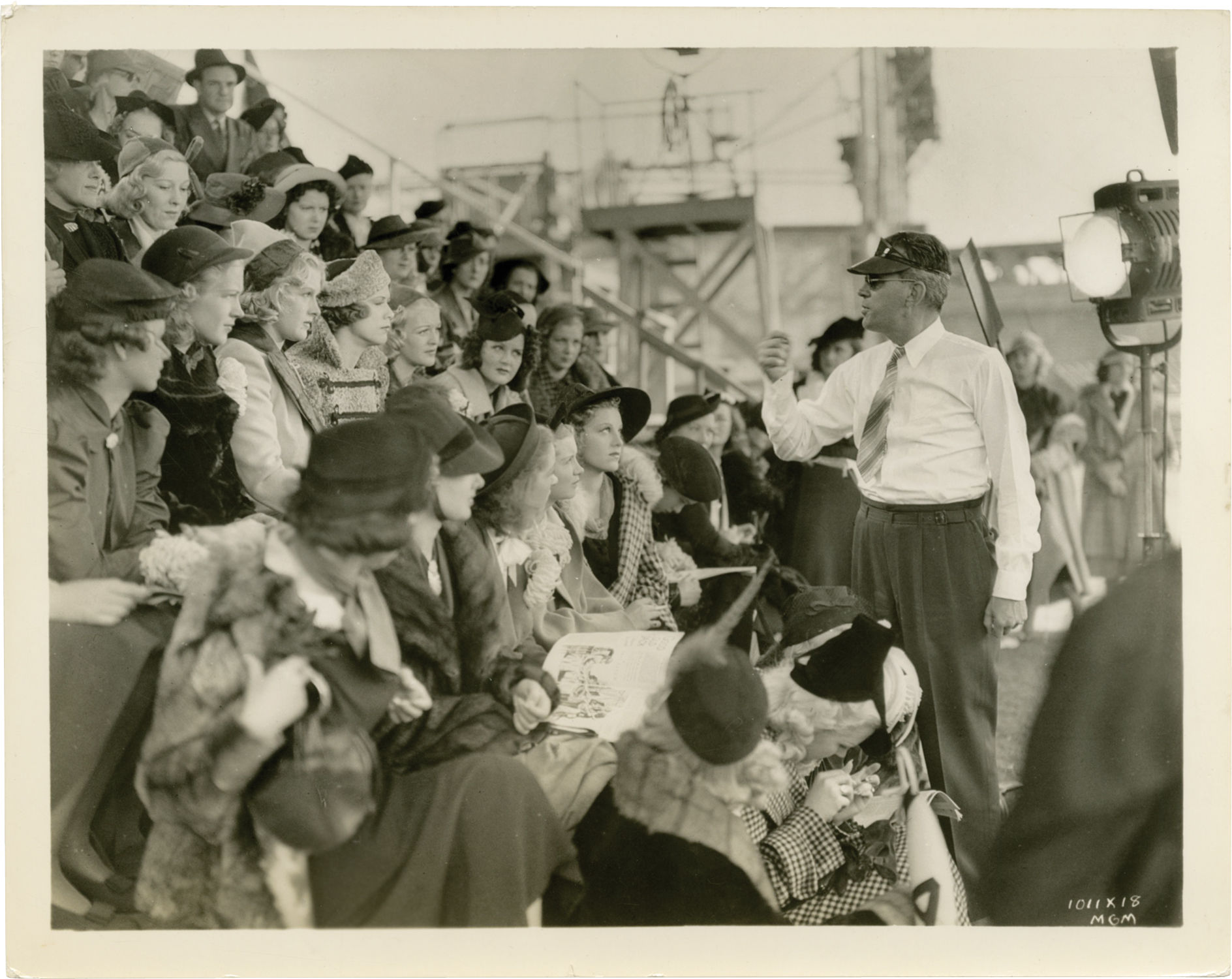 Beverly Hills, CA: Metro-Goldwyn-Mayer [MGM], 1937. Vintage photographs of director W.S. Van Dyke instructing a bleacher full of young women, including stars Eleanor Powell and Ilona Massey, on the set of the 1937 musical film. With a mimeo snipe on the verso.