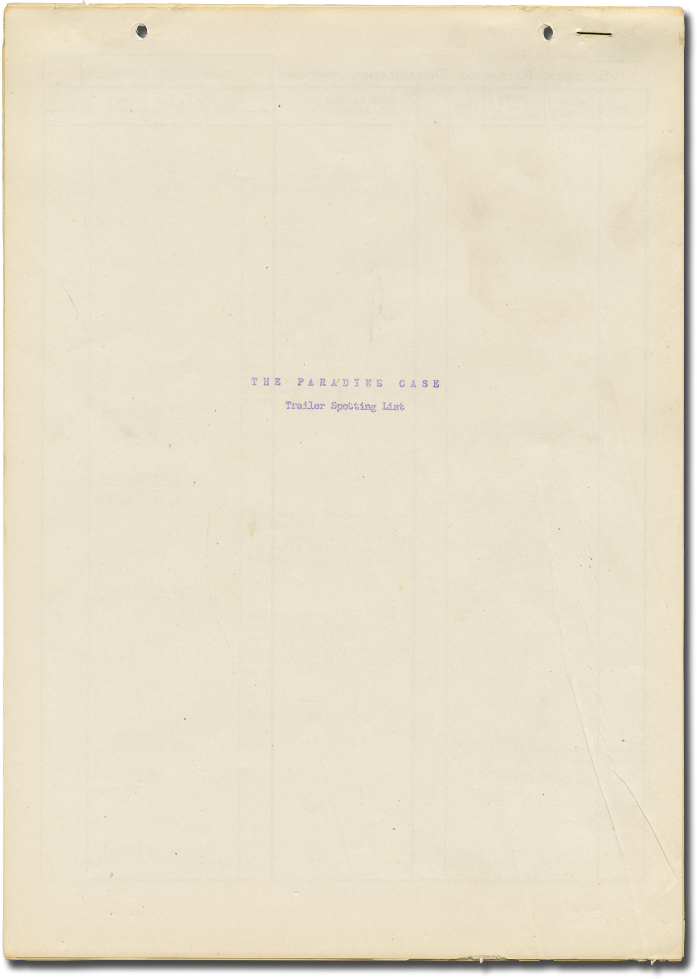 The Paradine Case (Trailer Spotting List script for the 1947 film)