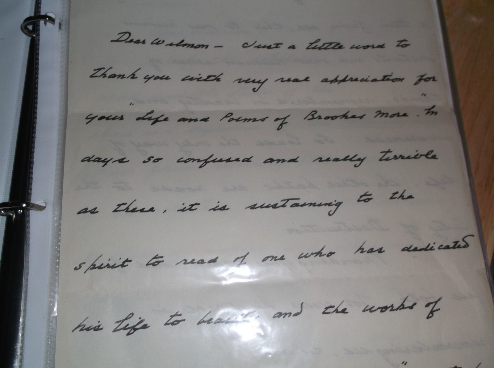Letter. Near Fine. A fine archive of 4 AUTOGRAPH LETTERS SIGNED in Beston's neat hand consisting of 10 pages and 2 hand-addressed and SIGNED envelopes along with a small photograph of Beston and his wife, Elizabeth Coatsworth, annotated in another hand on the rear. Three of the letters are addressed to Wilmot Brewer and one to Brookes More, both of Hingham, Massachusetts, where Beston lived. Brewer edited a collection of poems by More and wrote a brief biography of him. In the letter to More, Beston thanks him for sending his translation of Ovid's METAMORPHOSES. In a letter to Brewer he thanks him for his book on More: "In days so confused and really terrible as these, it is sustaining to the spirit to read of one who has dedicated his life to beauty and the works of the muses." In another letter to Brewer dated 28 December 1941 Beston mentions World War II and thanks him for his "most readable study of the place and influence of the METAMORPHOSES." In the longest letter Beston comments on a book about Virgil: "The book does just what a book ought first of all to do, it enlarges life, throwing good wood on the fire of the imagination and stirring one's interest in the variety and richness of the human spirit."