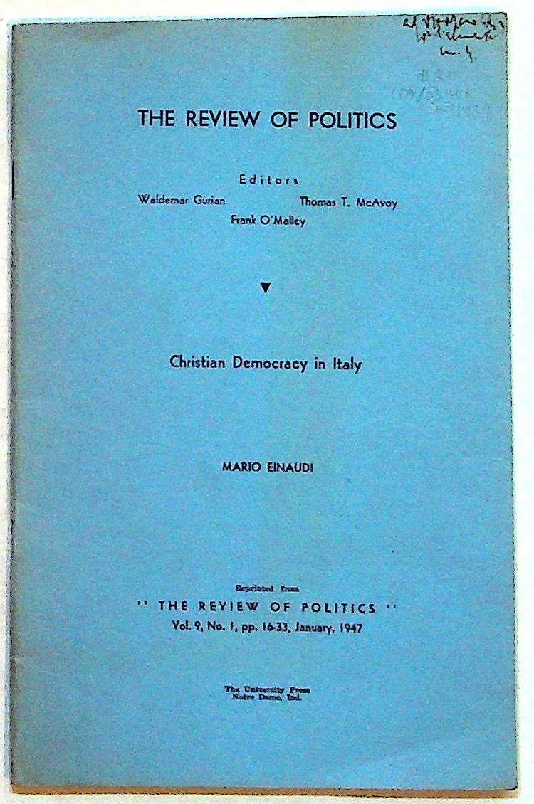 Christian Democracy in Italy (reprinted from The Review of Politics Vol. 9, No, 1, pp. 16-33, January, 1947)