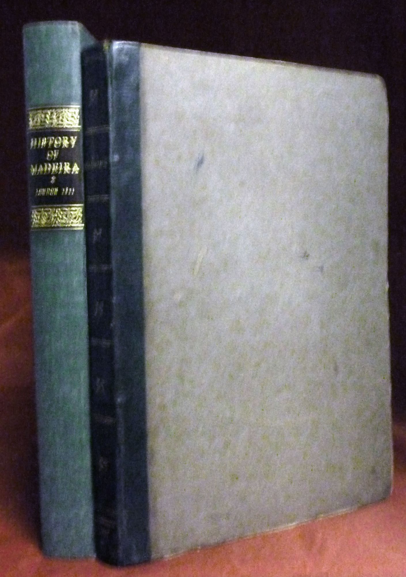London: R. Ackermann, 1821. First edition. Hardcover. Orig. dark green roan and brown boards, backstrip lettered and decorated in gilt. Very good in very good green cloth clamshell box with brown leather spine label. 118 [2] pages. 28 x 19 cm. Hand colored title vignette and 27 aquatint full page plates (all vignetted, except No. 27). This is the earliest work on Madeira listed in [ABBEY189] with the note, "Originally published in half roan, latter remaindered by Nattali in cloth as here." A bright uncut copy, with Whatman paper dated 1821. Marston Library inscription on pastedown dated 1826, Richard Boyle Viscount Dangarvan armorial bookplate, and Joel Spitz bookplate with colored image of Henry Alken. Tiny bookseller label "Penny Bookseller, Cheap Street" front pastedown. Laid-in at rear is an eight page pamphlet By an Ex-Invalid, published London: Bell And Daldy, 1859 entitled "Madeira. A Brief Letter Of Advice To An Invalid, In Reply to A Request For Information About Madeira As A Winter Residence." Latter in fine condition. He notes, "You can see more misery in an hour in the streets of Bath, Cheltenham, and Torquay, than in Funchal in a whole season." The season is described as from October to May. Also laid-in an ALS to Joel Spitz. COLAS 1255. LIPPERHEIDE 1581. TOOLEY 150.