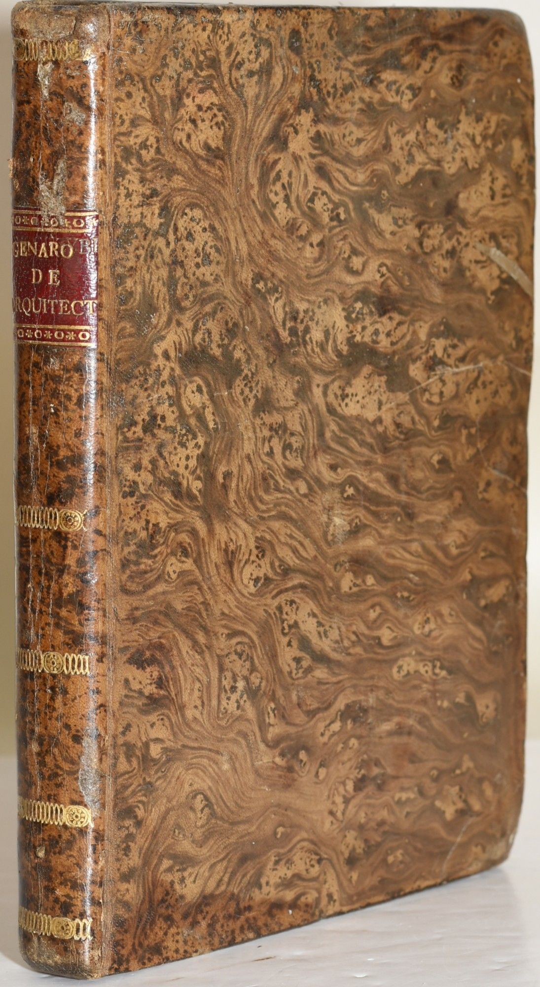 Valencia: Joseph de Orga, 1804. First Edition. Full Leather. Very Good binding. A clean copy. Bound in tree calf with morocco label and decorative rules stamped in gilt on the spine. Some wear to edges of the spine and corners of the boards. Includes 53 of the labeled 54 black and white engraved plates, most foldout. Plate 47 is partial, lacking at least a section. Minor worming to the rear board. Marbled endpapers. All edges red. Very Good binding.