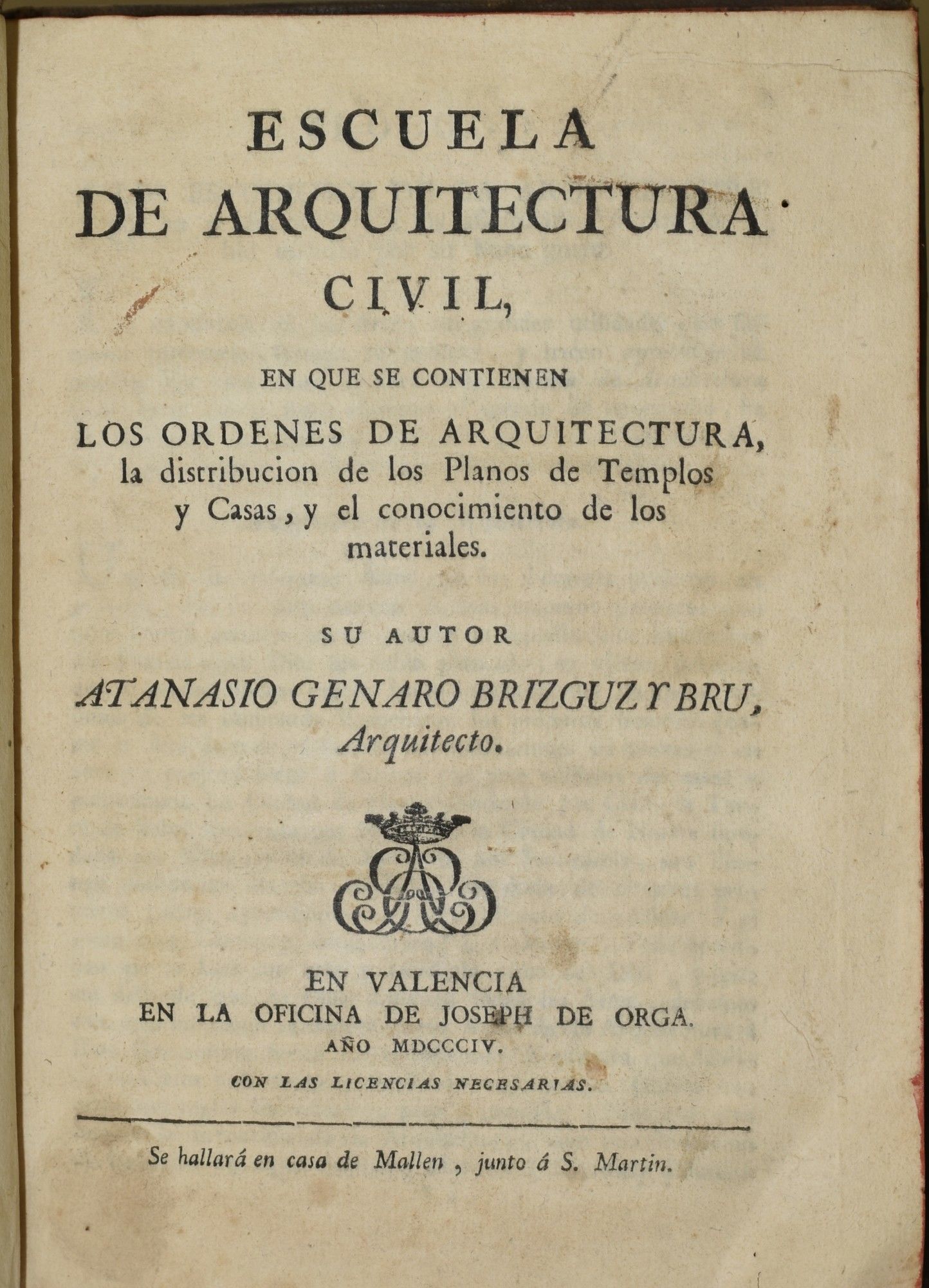 - Valencia: Joseph de Orga, 1804