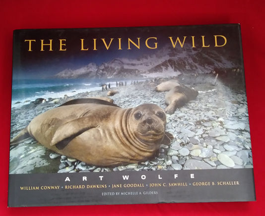 Seattle, WA: Wildlands Press, 2000. Third printing. Hardcover. Very good/very good. SIGNED. 255pp. Oblong folio [29 cm x 37 cm] Black paper over boards, with subtle warping to the front board. In a dust jacket, with rubbing to the surface. May require extra postage due to weight. With contributions by William Conway, Richard Dawkins, Jane Goodall, John C. Sawhill, and George B. Schaller. Art Wolfe is one of the most celebrated and highly published nature photographers of our time. Art Wolfe has signed the recto of the dedication page, below a lengthy inscription from the staff of the Rainforest Alliance.