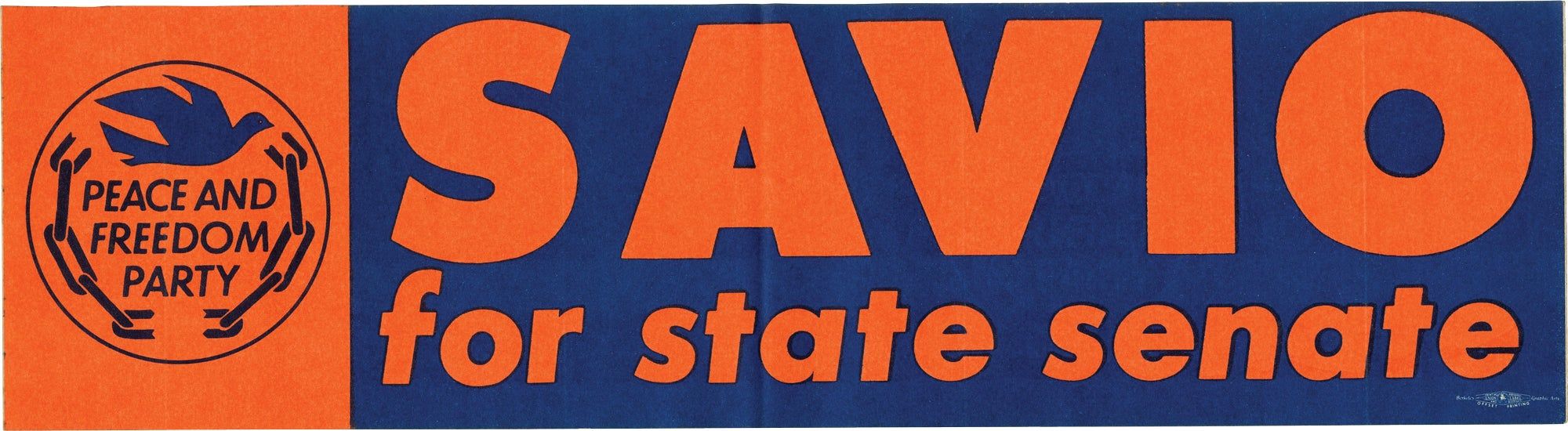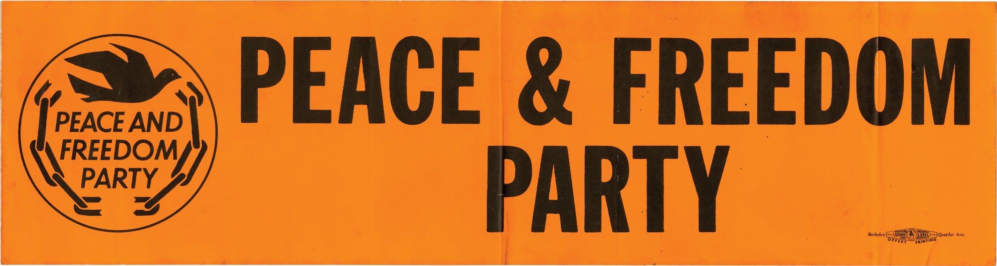 Each of the stickers were made for various Peace and Freedom Party political campaigns, including: Mario Savio for California state senator, Black Panther founders Huey Newton and Bobby Seale, and Eldridge Cleaver for president, and two stickers simply advertising the Peace and Freedom Party itself.