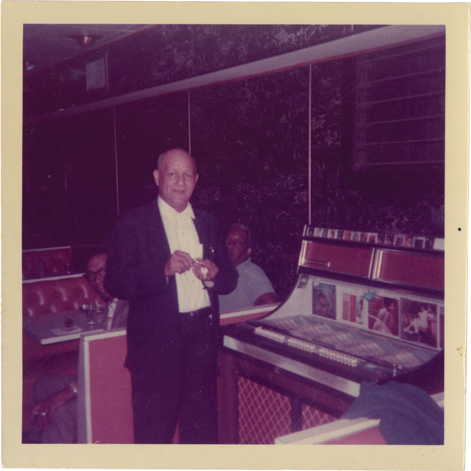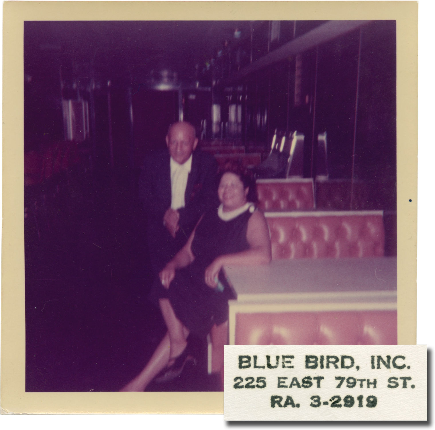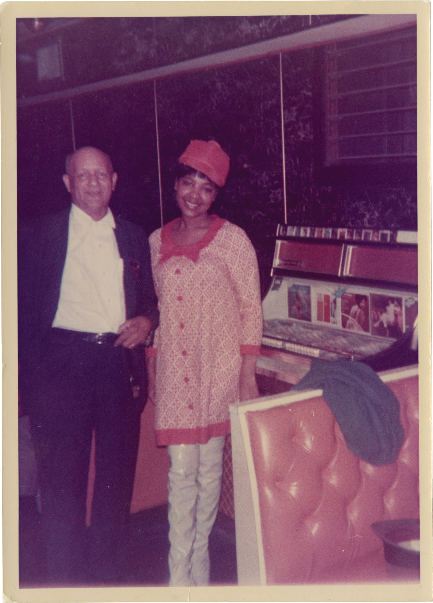 Three photographs show Patterson, who is white, posing with what we presume to be one of Blue Bird's juke boxes, two with African American patrons of the bar, one with an African American woman identified as the bar's manager, Fran White. The fourth photograph is of a bartender, identified only as Pearl.