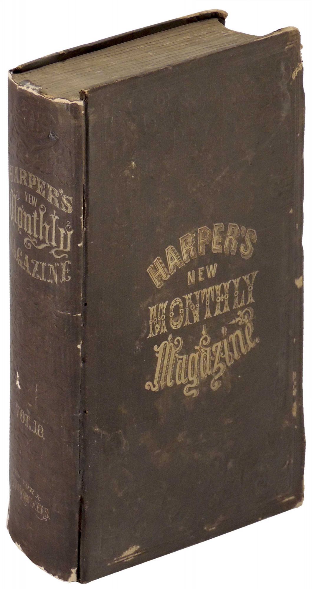 New York: Harper & Brothers, 1855. Hardcover. Very Good. Hardcover. Includes Melville's short story "The Paradise of Bachellors and the Tautarus of Maids" on pages 670 - 678; chapters 39 - 57 of "The Newcomes" by Thackeray; and several short stories by Charles Dickens including: Lawyer's Story, Redeemed Profligate, and Widow's Story. Also includes a 13 page article about dogs titled "The Dog, Described and Illustrated" and a five page article on vampires. Bound in the original black cloth with gilt title to spine and front cover. Embossed decoration to spine and covers. A few chips to book cloth on hinges, covers, and spine ends. A few spots of dampstaining to rear cover. Foxing to interior. Illustrated. Lacks one of the six fashion plates. 864 pages. PER/050618.