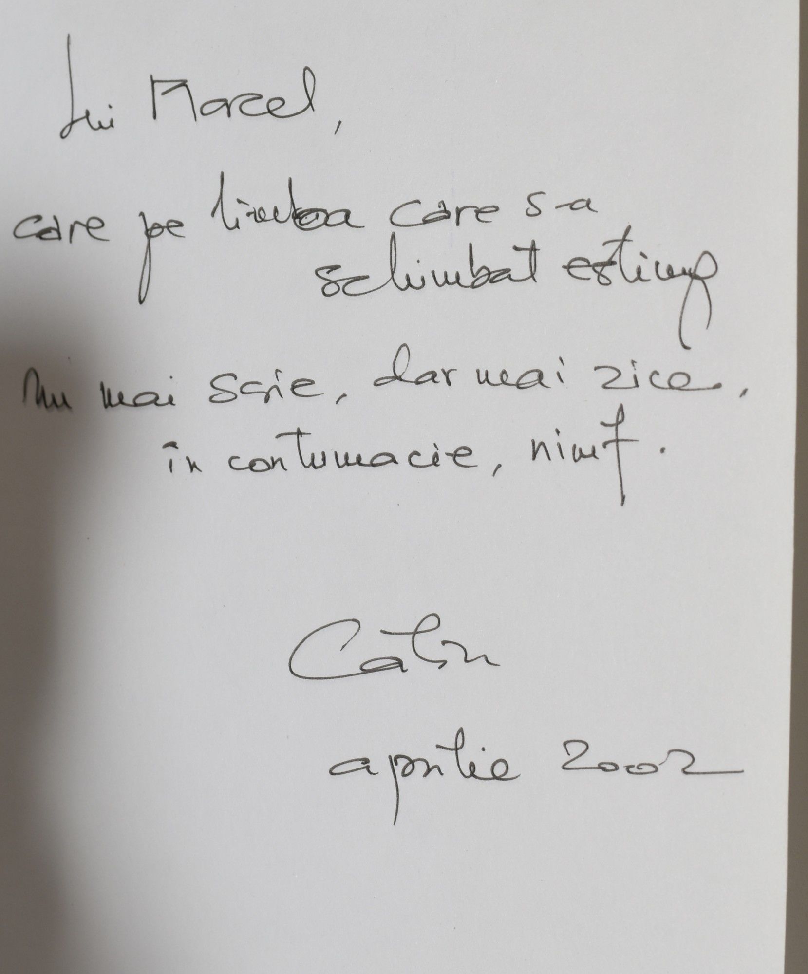 Bucuresti: Curtea Veche, 2002. Limited Edition. Hard Cover. Fine binding/Near Fine dust jacket. Signed. A clean Limited Edition copy, numbered 5 of 25 copies. Signed by the author on the front endpaper, with a personal inscription in Romanian. Possible initials from the author on the limitation page. Text in Romanian. Dustjacket is clean and bright. Fine binding / Near Fine dust jacket.