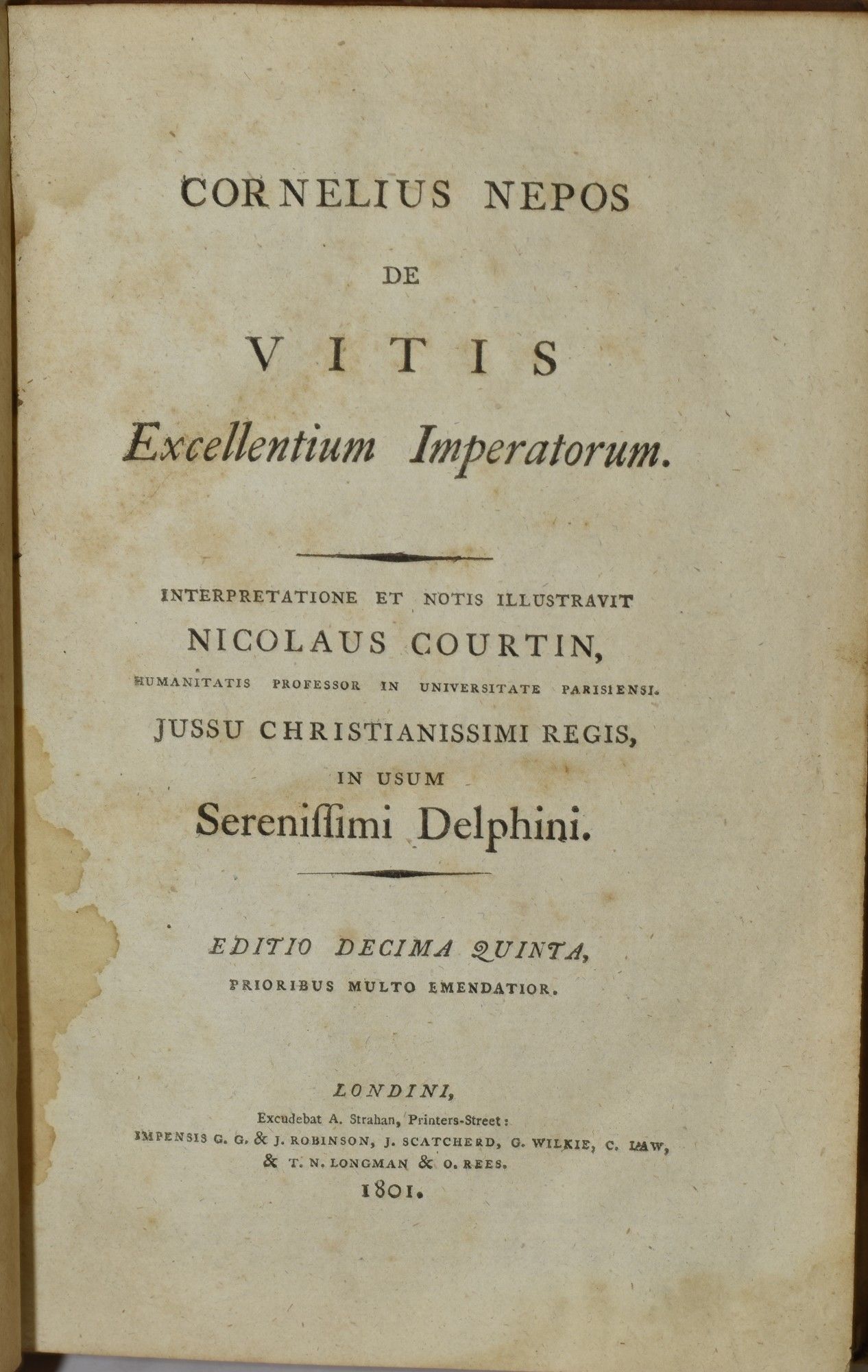 CORNELIUS NEPOS. DE VITIS EXCELLENTIUM IMPERATORUM