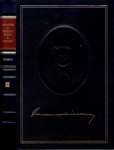 Salt Lake City, UT: Church of Jesus Christ of Latter Day Saints, 2005. Church Employee Gift Editions. Leather bound. Very good +. 706; 706pp. Large octavo [24 cm] Full blue leather with raised bands. Embossed portrait of Hinckley on front board with facsimile signature in gilt. All edges gilt. Moire endsheets. Gentle bumping to the spine ends of the second volume. These editions are the 2004-2005 annual gifts to church employees.