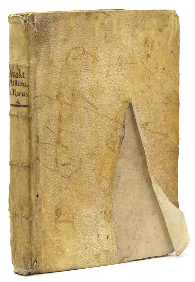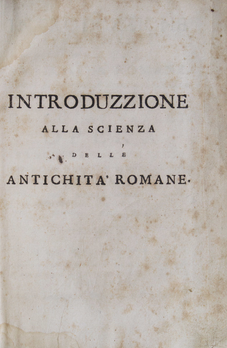 Venezia: Appresso Cristoforo Zane, 1738. Second edition (first printed by Zane in 1732). Collation: A-P8 (P8 blank, present). Pp. [xxii], 215, [3, blank]. 1 vols. 8vo. Contemporary vellum. Rubbed but sound (losses to covers, lower flyleaf removed). Some internal soiling and marginal flaws. Ownership signatures of Annibali Josephi, 1830. Very good. Second edition (first printed by Zane in 1732). Collation: A-P8 (P8 blank, present). Pp. [xxii], 215, [3, blank]. 1 vols. 8vo. Italian edition of Vaslet’s Introduction à la connoissance des antiquitez romaines (1723), an early guide to the systematic study of Classical Rome, covering laws and administration, military and naval matters, with a calendar of festivals and discussions of money and coinage.