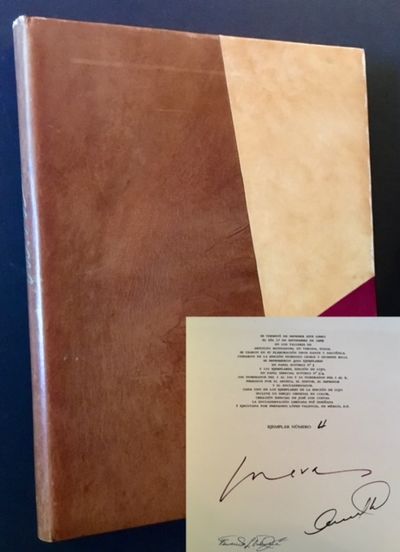 Mexico: Galeria de Arte Misrachi, 1969. Full leather. Fine. Jose Luis Cuevas. #4 OF 110 COPIES SIGNED BY THE ARTIST JOSE LUIS CUEVAS, THE PUBLISHER AND THE GREAT MEXICAN BOOKBINDER FERNANDO LOPEZ VALENCIA. This copy, bound in the publisher's full, multi-colored leather, also includes an original color drawing by Cuevas (at the frontispiece), executed especially for this deluxe edition. Folio, also includes a solid, well-preserved example of the publisher's silk slipcase, which shows very light wear along the bottom-edge. The text written by the great Mexican author Carlos Fuentes. A near-pristine copy of this very impressive limited edition.