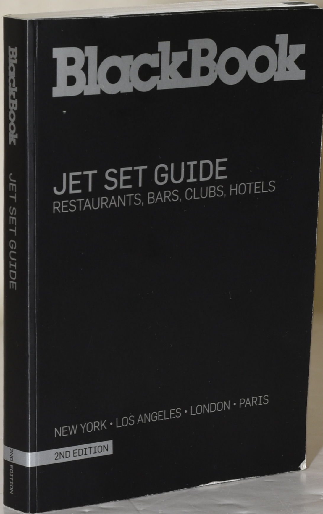 New York: Blackbook Media Corp, 2009. Second Edition. Soft Cover. Near Fine binding. The 2009 Second Edition of the BlackBook Jet Set Guide for restaurants, bars, clubs, and hotels in New York, Los Angeles, London, and Paris. Prepared for the traveling business class, who might need to find a "moderately" priced $70 meal for two, or a hotel room for a "midday... meeting." A clean copy, with no marks of any kind. Black paperback. Minor shelfwear. Near Fine binding.