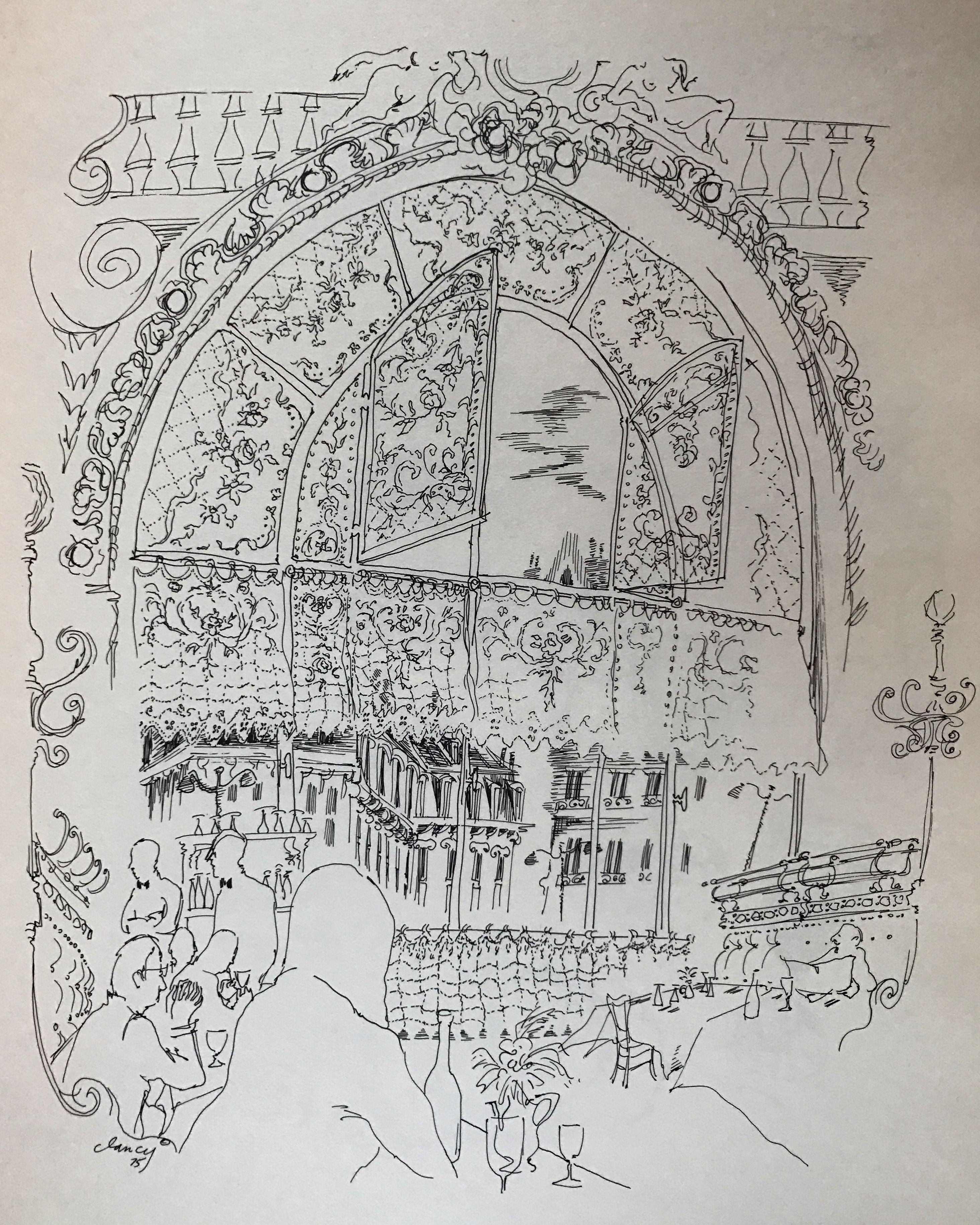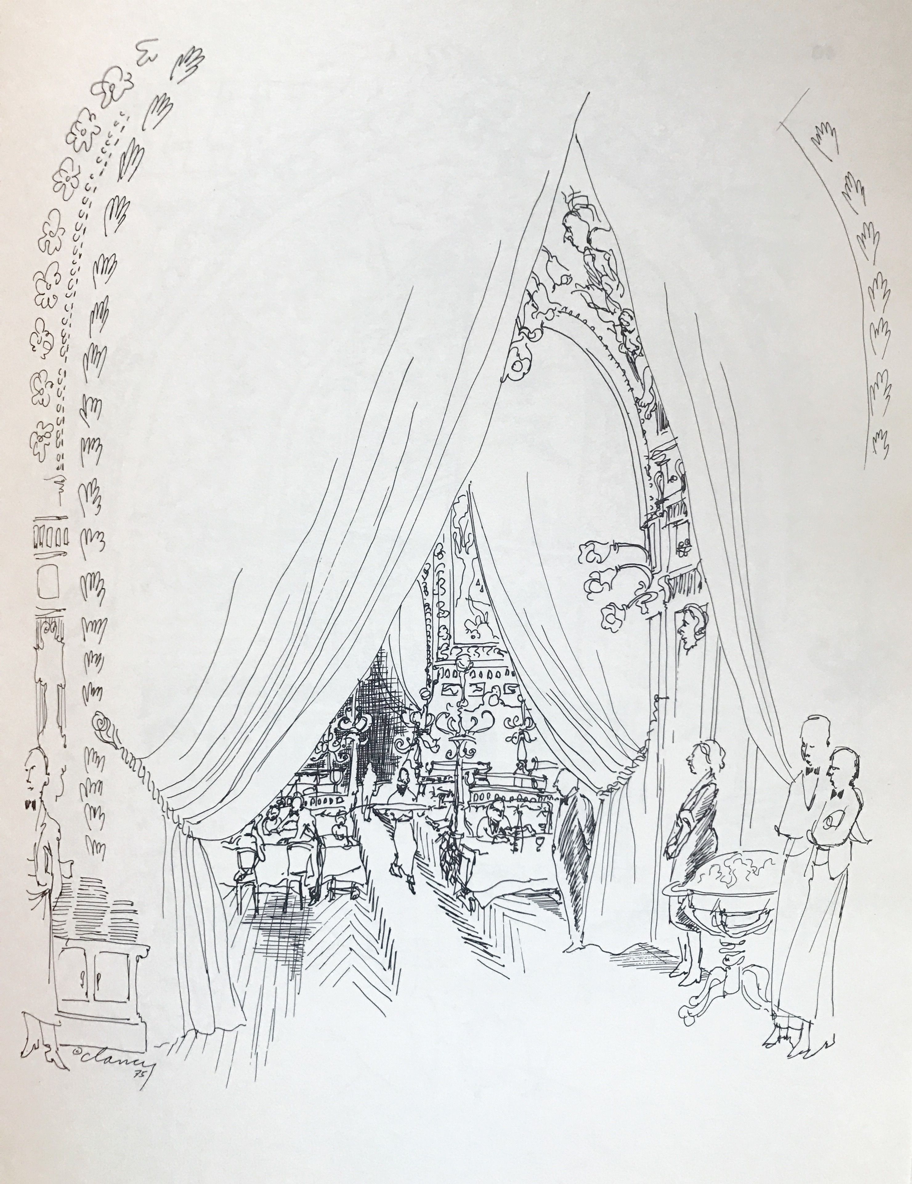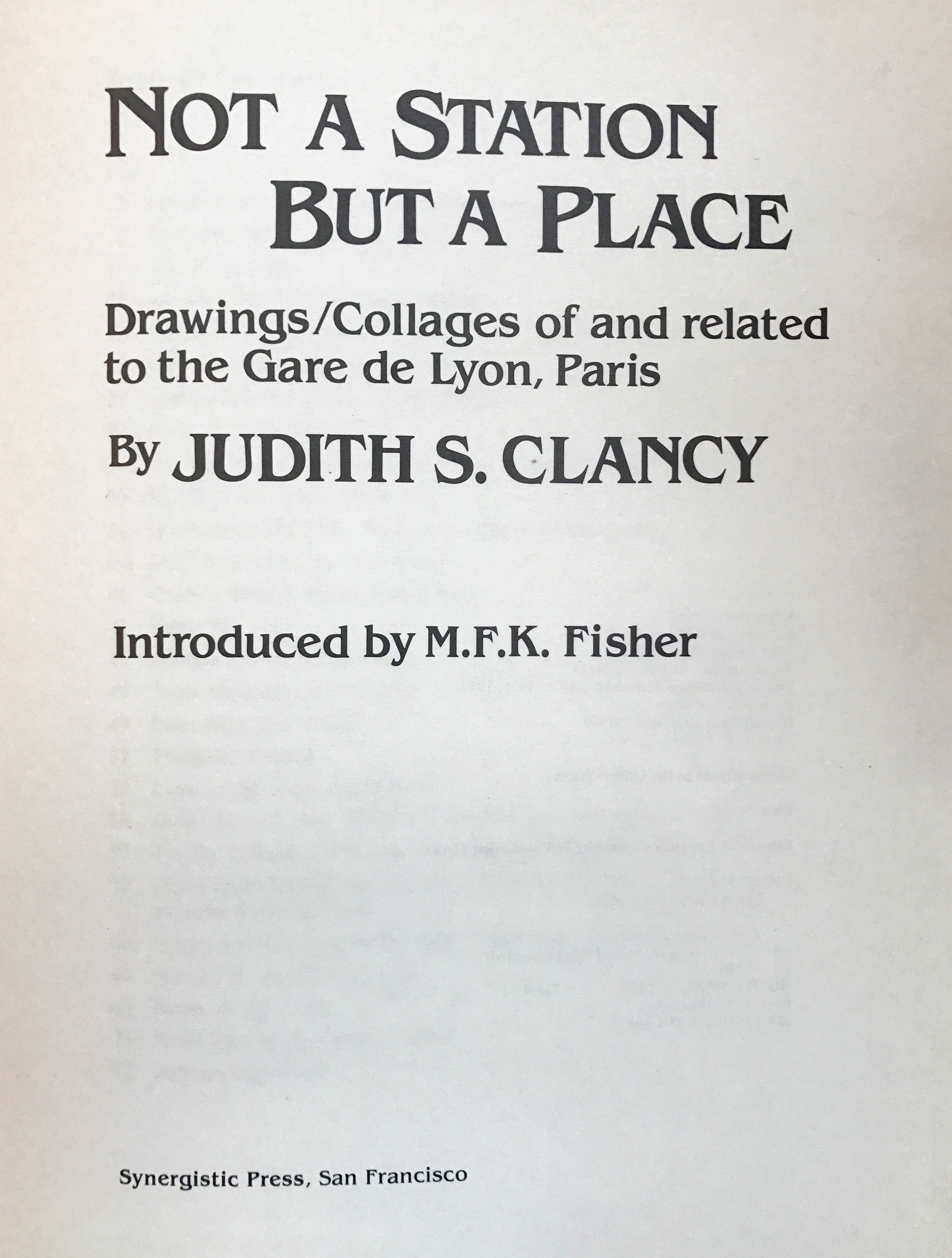 San Francisco: Synergistic Press, 1979. First Edition. Hardcover. Blue boards. Near fine. 72 pages. 28.5 x 22 cm. Introduced by M.F.K. Fisher. Clancy's reminiscence of Paris' Gare de Lyon, 24 line drawings plus photographed ephemera from the French train station. Crisp, clean copy. Lacking slip case.