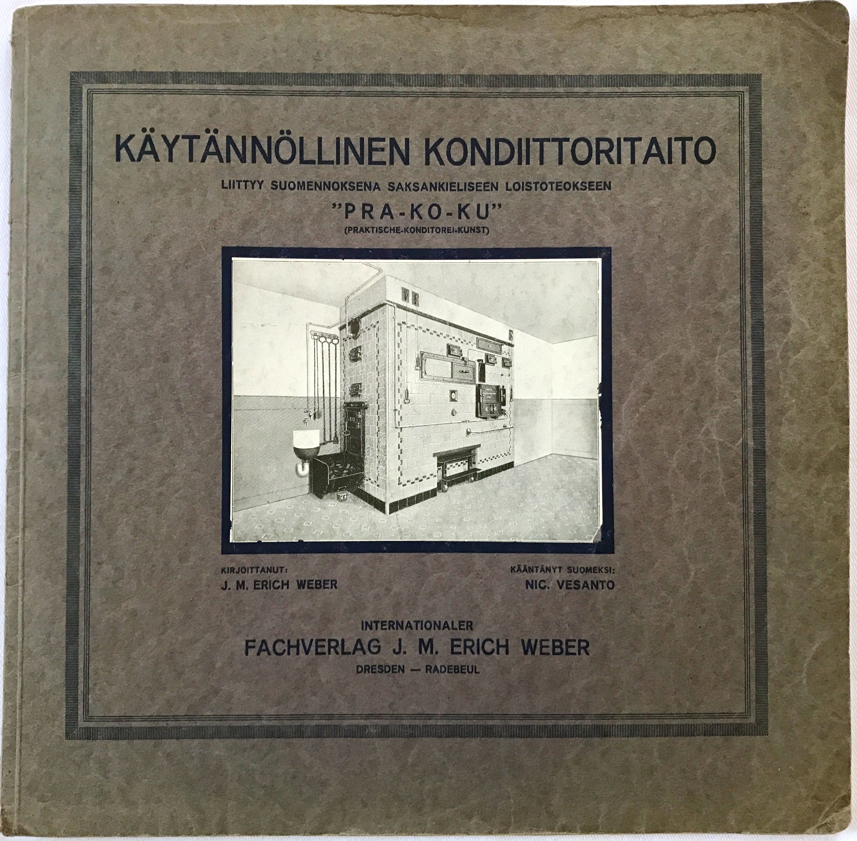 Paperback. Large format gray warps. Very good. Weber, J.M. Erich. Liittyy Suomennoksena Saksankieliseen Loistoteokseen Pra-Ko-Ku (Praktische-Konditorei-Kunst) Dresden-Radebeul: Weber, c. 1921. 68 pages. Illustration mounted on cover. Over 600 products for confectionery and bakery operations aimed at Finnish market.
